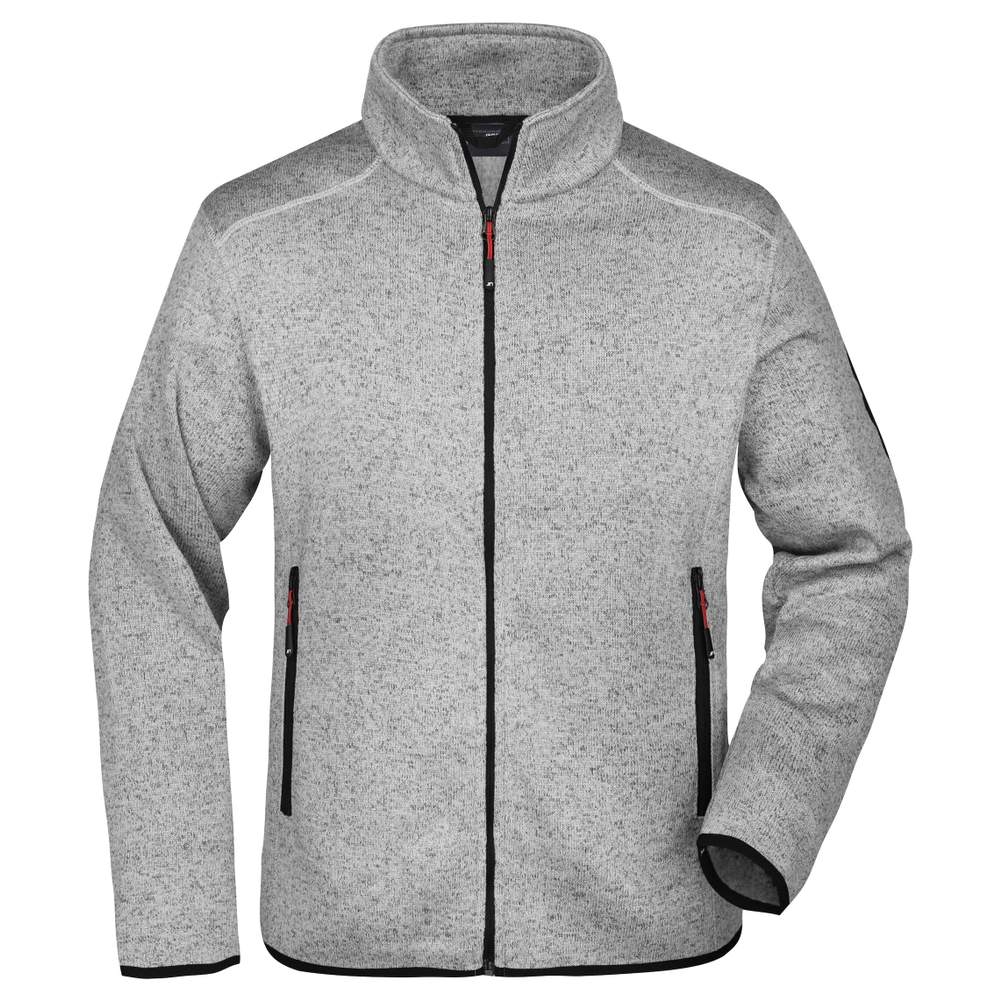 JN762 - Mäns stickad fluffjacka jn762 - light_grey_melange/red
