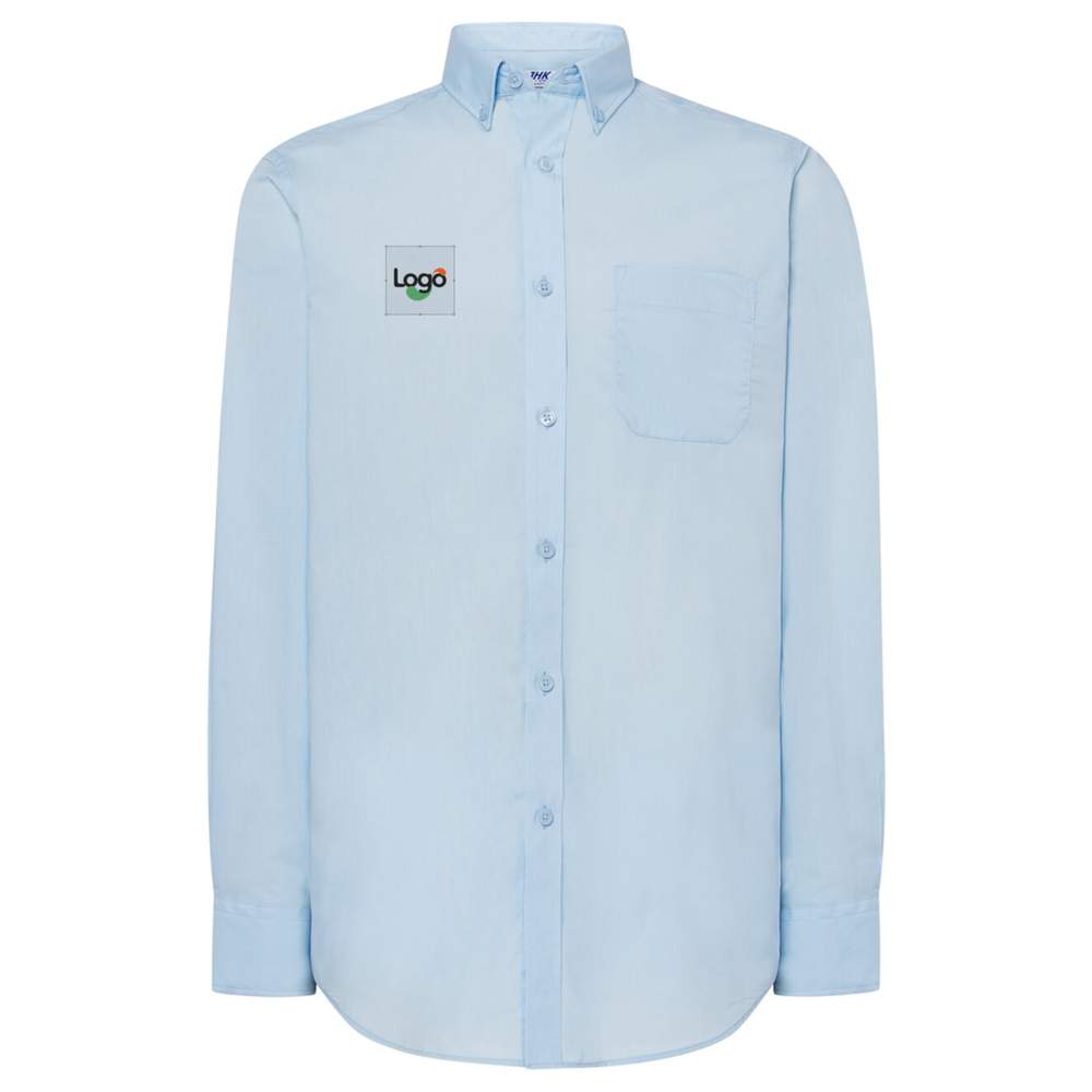 Poplin skjorta för herrar, tillverkad i en bomull-polyesterblandning. Den har långa ärmar, en klassisk knäppt krage och en diskret bröstficka. Knapparna är i samma färg, vilket ger en snygg finish. Denna skjorta är idealisk för anpassning genom broderi, vilket gör det möjligt att integrera ditt logotyp eller design för ökad synlighet. Dess klassiska skärning erbjuder optimal komfort hela dagen.