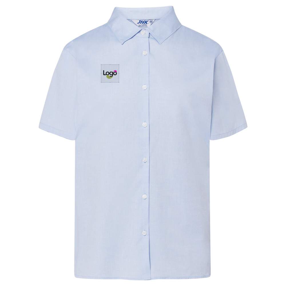 Oxfordskjorta korta ärmar dam shloxfss personliggjord - Sky blue