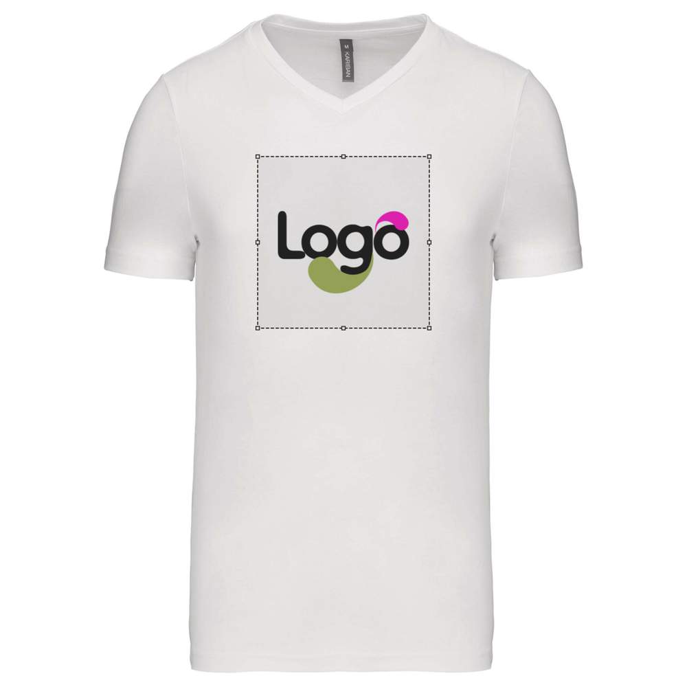 Detta t-shirt med V-hals och korta ärmar KARIBAN k357 är tillverkat i 100% bomull med en enzymtvätt för optimal komfort. Dess passform kommer att framhäva din silhuett. Den kontrasterande renhetsbanden, grå fläckig för de flesta färger och vit för den vita färgtonen, tillför en touch av elegans. De vårdade detaljerna med dubbla nålar i ärmarnas botten och klädesplaggets botten garanterar ökad hållbarhet. Detta t-shirt är idealiskt för personlig anpassning enligt dina behov och önskemål.