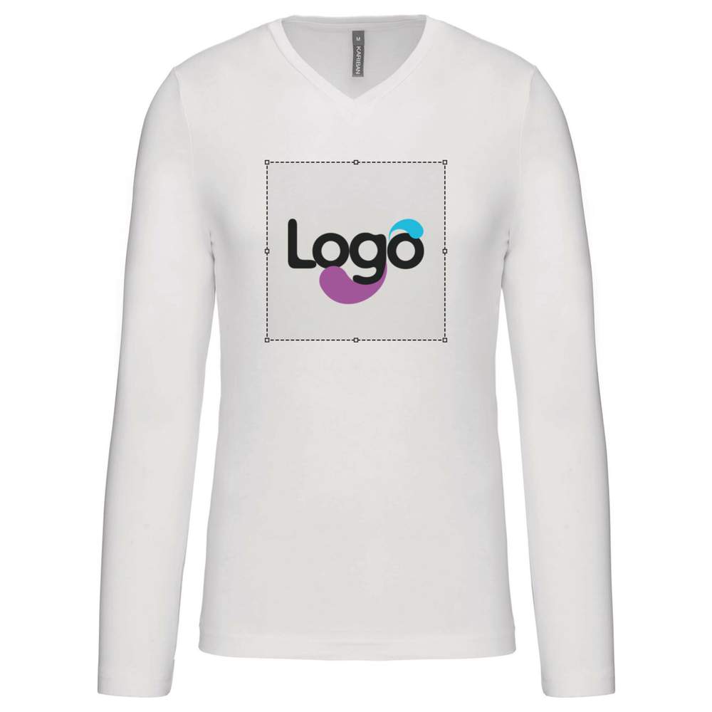 Långärmat t-shirt v hals k358 personalisering - White