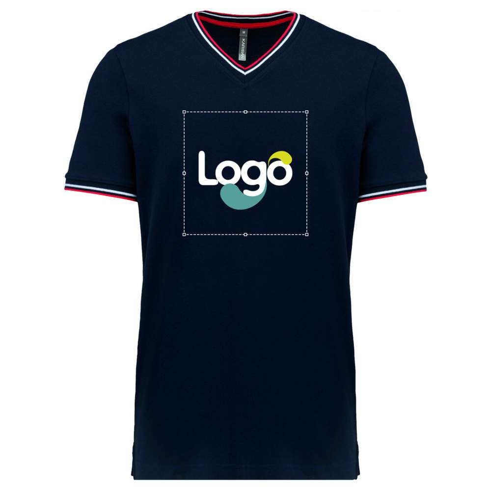 T-shirt stickad tröja v-märke man k374 personliggöring - Navy red white