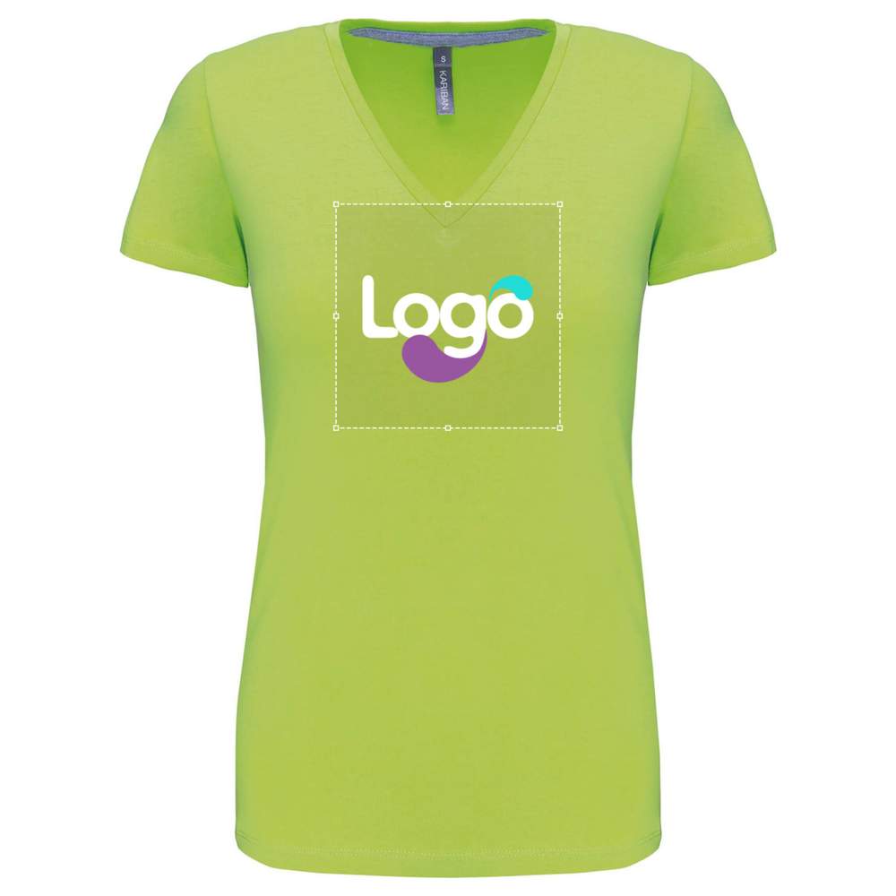 T-shirt med v-krage korta ärmar för kvinnor k381 personliggöring - Lime