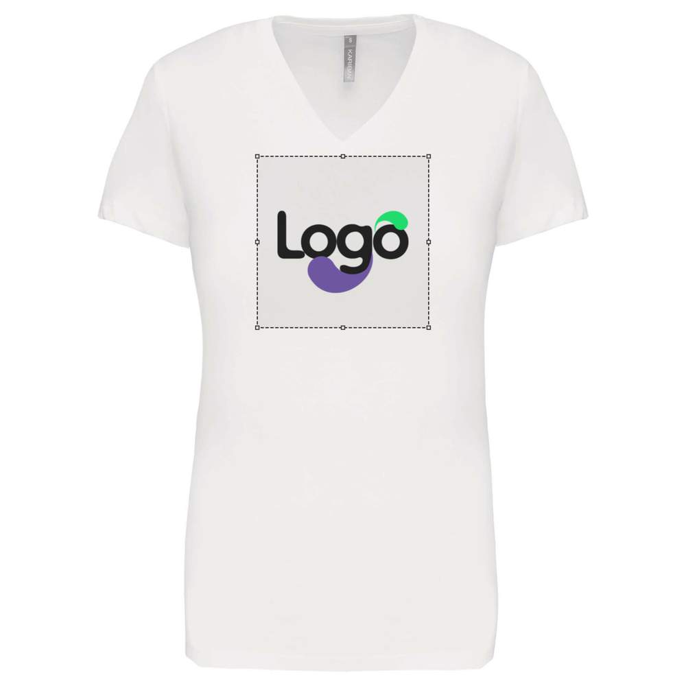 K381 - T-shirt med v-krage korta ärmar för kvinnor k381 personliggöring - white