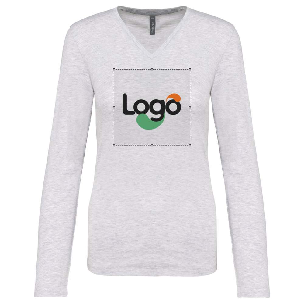 T-shirt V-hals långärmad dam k382 personlighet - Ash heather