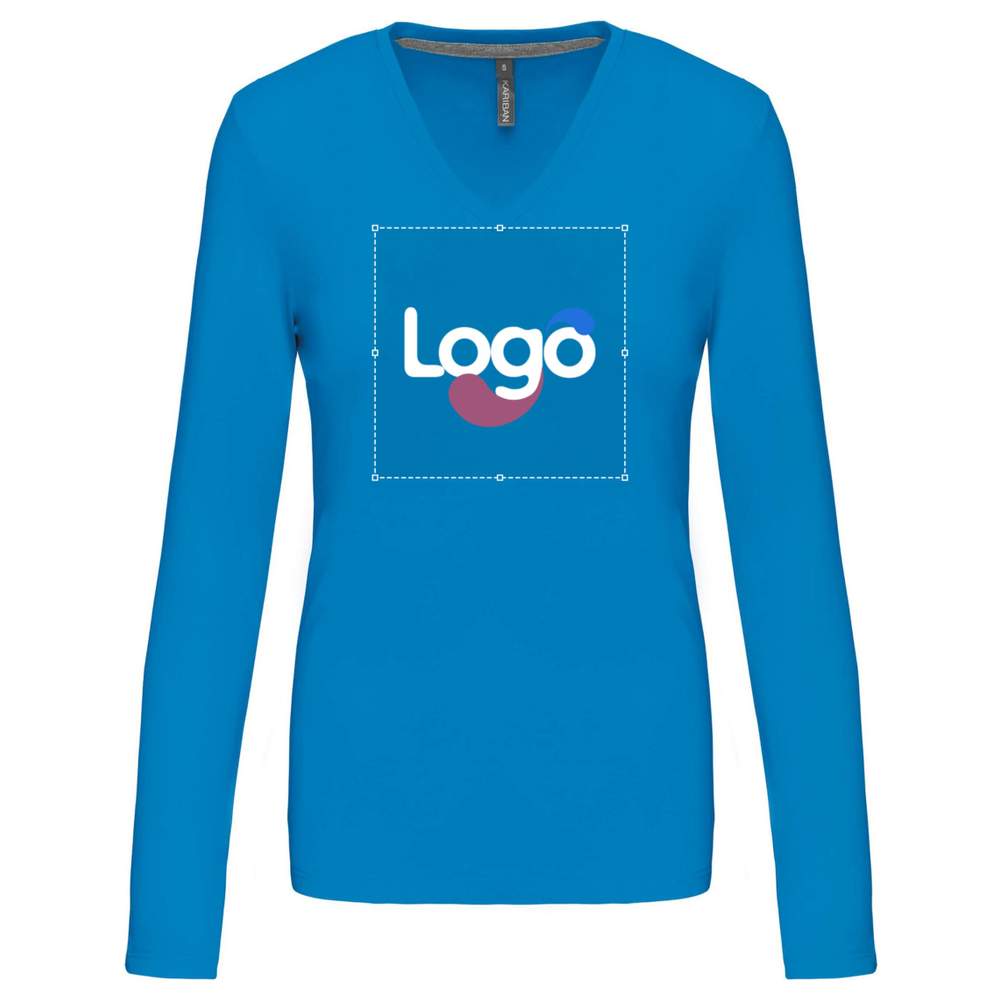 T-shirt V-hals långärmad dam k382 personlighet - Light royal blue