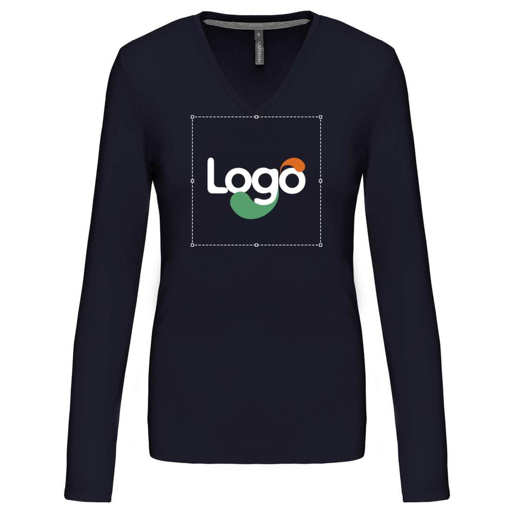 T-shirt V-hals långärmad dam k382 personlighet - Navy