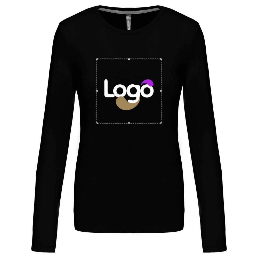 T-shirt rund krage långa ärmar kvinna k383 anpassning - Black
