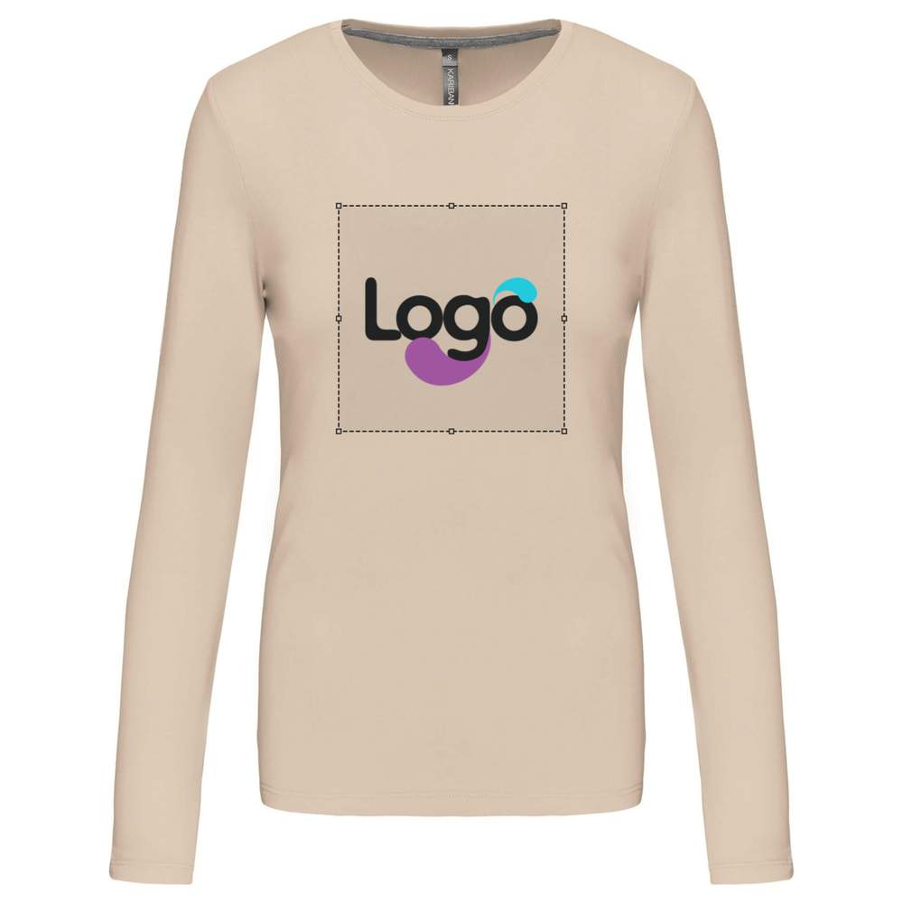T-shirt rund krage långa ärmar kvinna k383 anpassning - Light sand