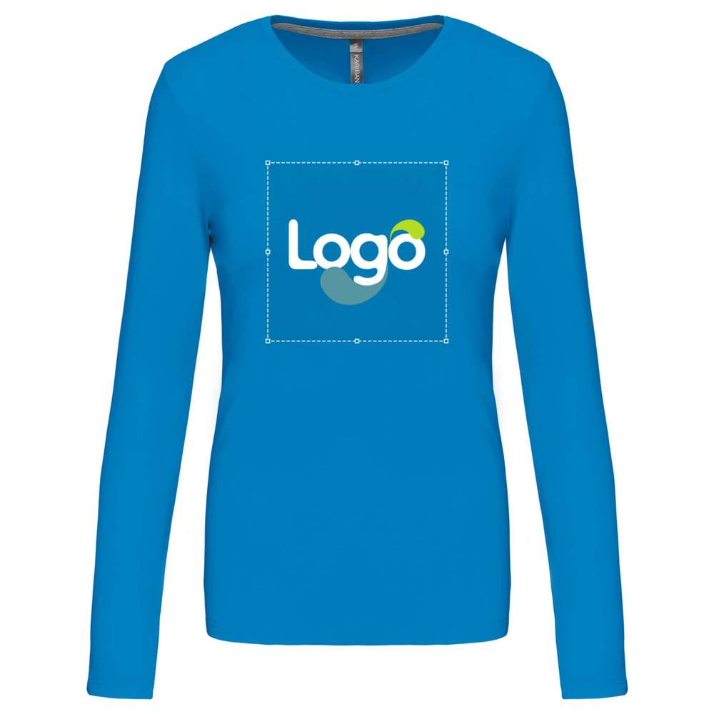 T-shirt rund krage långa ärmar kvinna k383 anpassning - Tropical blue