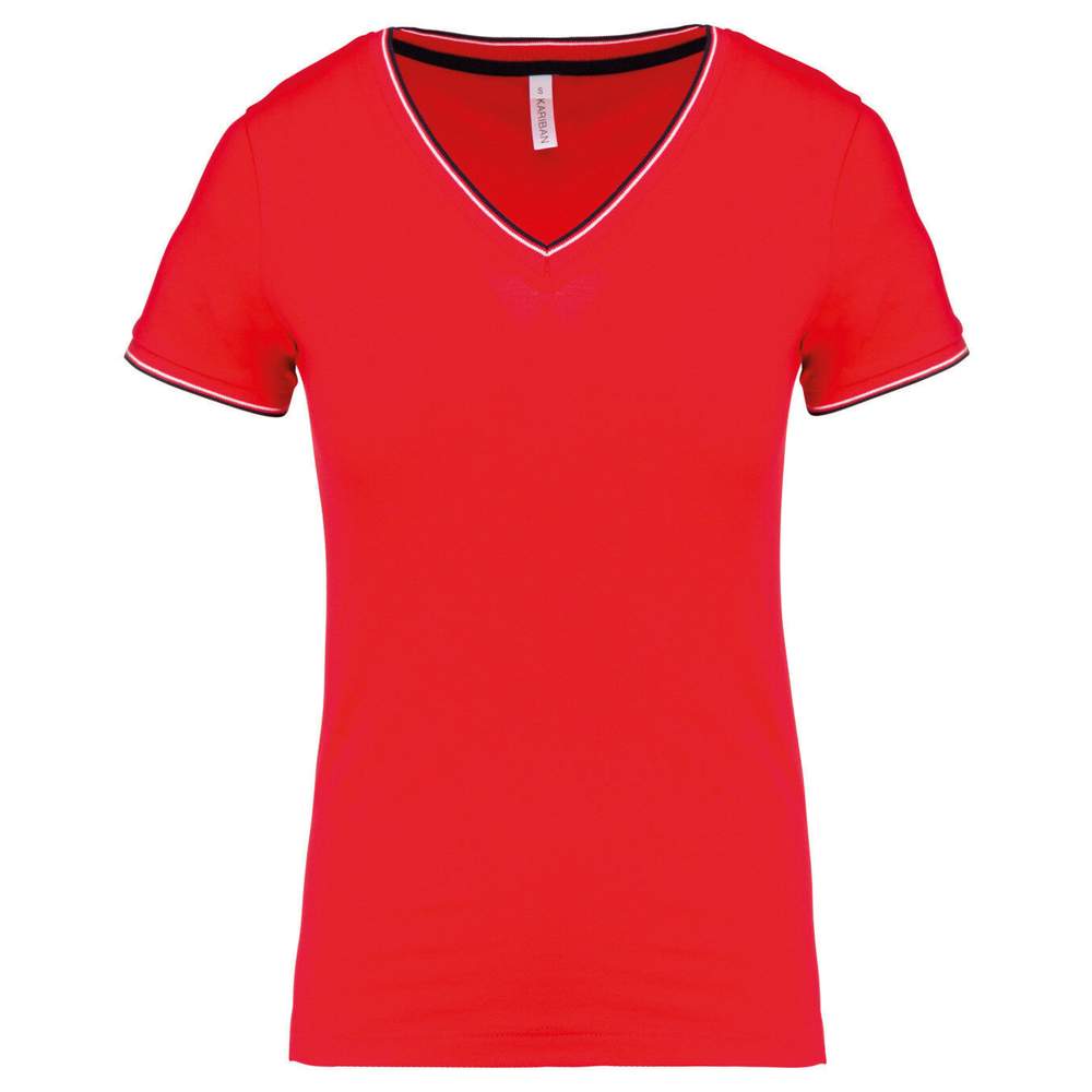 T-shirt stickad västflicka kol v kvinna k394 - Red navy white