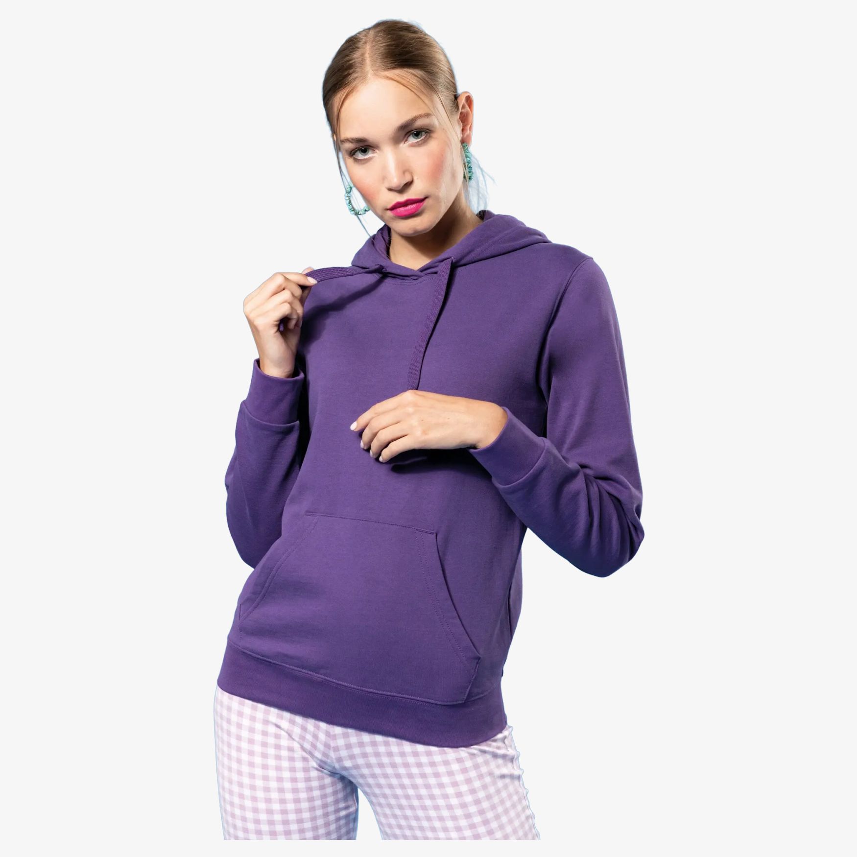 Detta sweat-shirt med halsduk för dam är tillverkat av skrapad fluffig för optimal komfort. Dess rörliga passform och känguru fack gör det till ett praktiskt och trendigt plagg. Monterade ärmar och kantstygning i slutet av ärmarna och plagget säkerställer en bekväm hållfasthet och ett snyggt utseende.