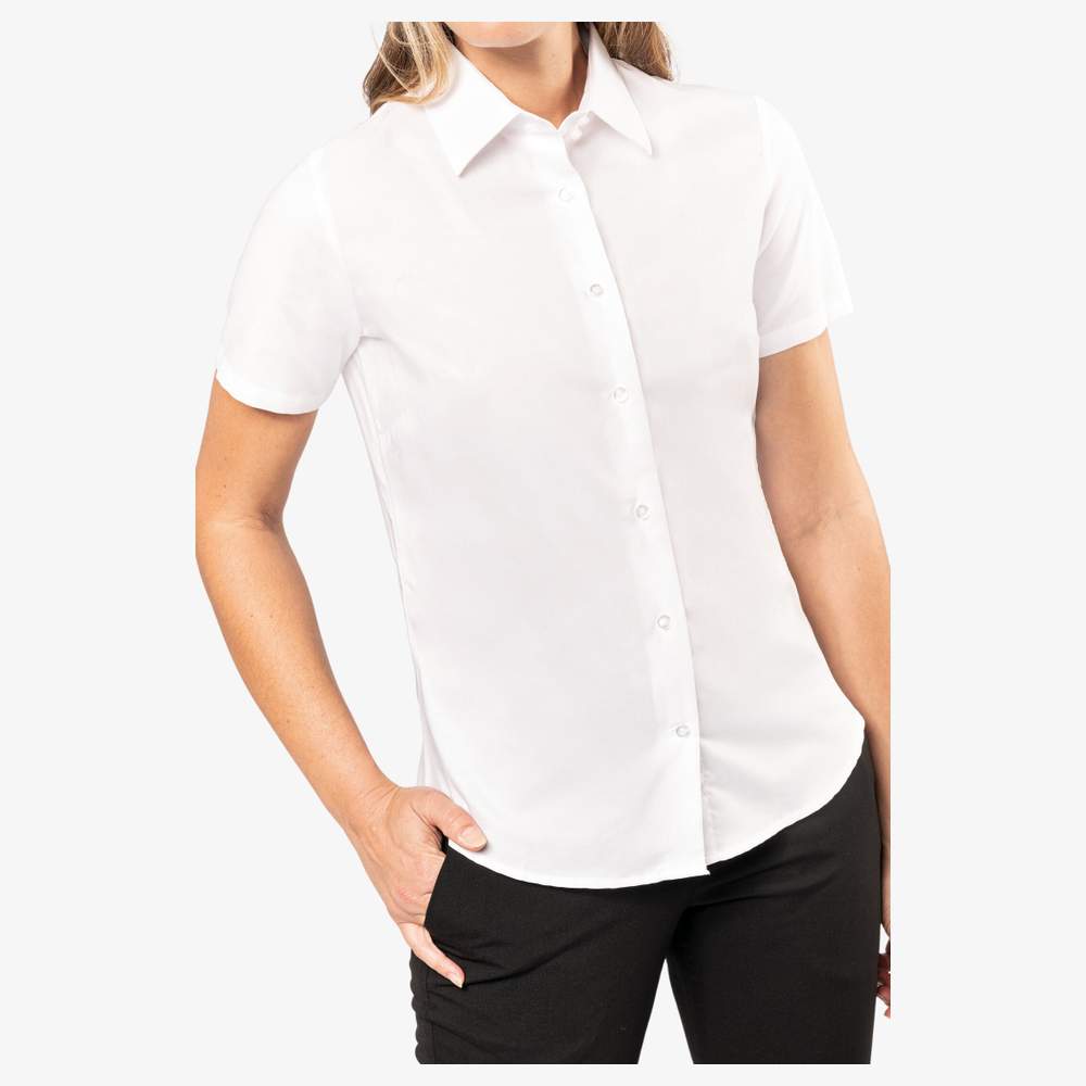 Denna oxfordskjorta för kvinnor förenar komfort och elegans. Tillverkad av 70% oxfordbomull och 30% polyester, den erbjuder enkel vård tack vare sin Easy Care-behandling. Den har en icke knäpplös krågsömsning, knappar i samma färg som skjortan, tvåknapps krage, rygg- och bröstinsnätningar för en passform, dubbelfylld ärmbotten med två återknappningsknappar. Den avrundade botten ger den ett modernt och kvinnligt utseende.