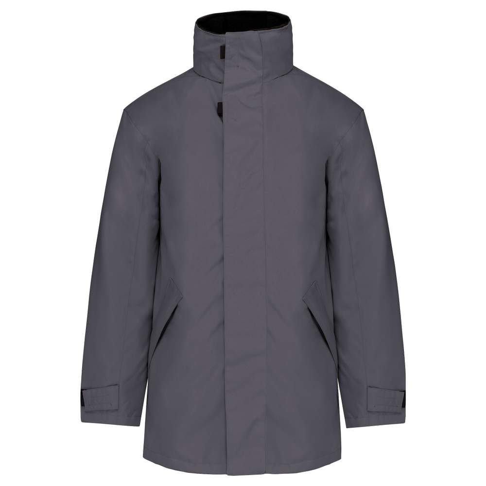 Denna parka av polyester erbjuder en praktisk och bekväm design. Den är försedd med ett foderad med stoppning för ökad värmeisolerings. Den zippade stängningen kompletteras med ett klammerband och dolda knäppningar. Den har två yttre zippade fickor, två inre fickor och en ficka för mobiltelefon. Huvudet är integrerat i kragen, och denna är fodrad med fleece för extra komfort. En inre zipper gör det möjligt att anpassa klädseln.