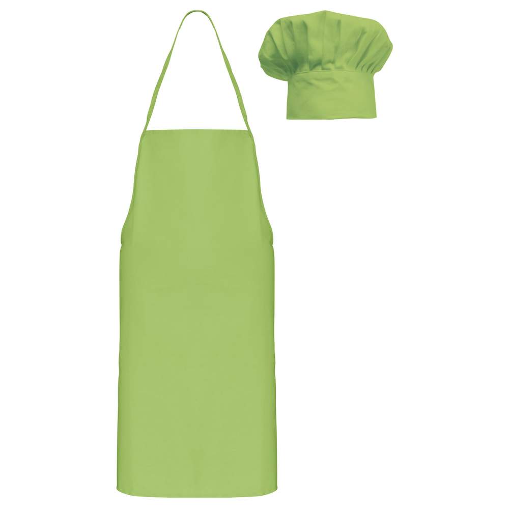 Detta chefsätt för barn omfattar en mössa och ett förkläde, båda tillverkade av 100% bomull. Mössan kan justeras med hjälp av ett selband för optimal komfort. Förklädet, i storlek 60x45 cm, erbjuder effektivt skydd under kulinariska aktiviteter.