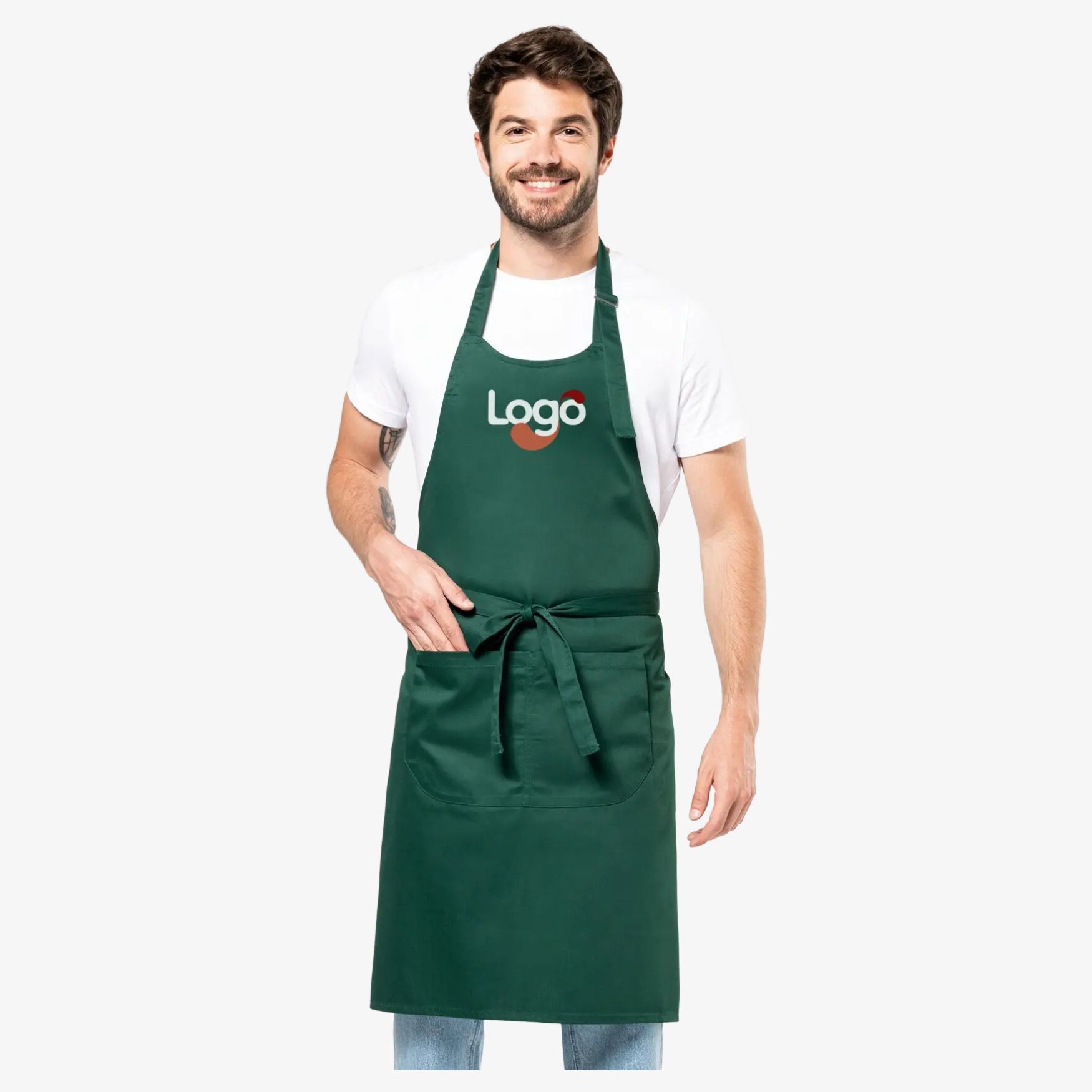 Detta skärmförkläde av polycoton KARIBAN k890 kombinerar komfort och funktion. Tillverkat i 65% polyester och 35% bomull, erbjuder det stor hållbarhet och enkel skötsel. Det är utformat med en justerbart passande metallstång och en stor framficka med 2 fack (H 20 cm - L 31.5 cm) för praktisk förvaring. Dess dimensioner är H 90 cm och L 76 cm. Detta skärmförkläde är anpassningsbart, till exempel genom broderi, för att visa ditt logotyp eller din visuella identitet.