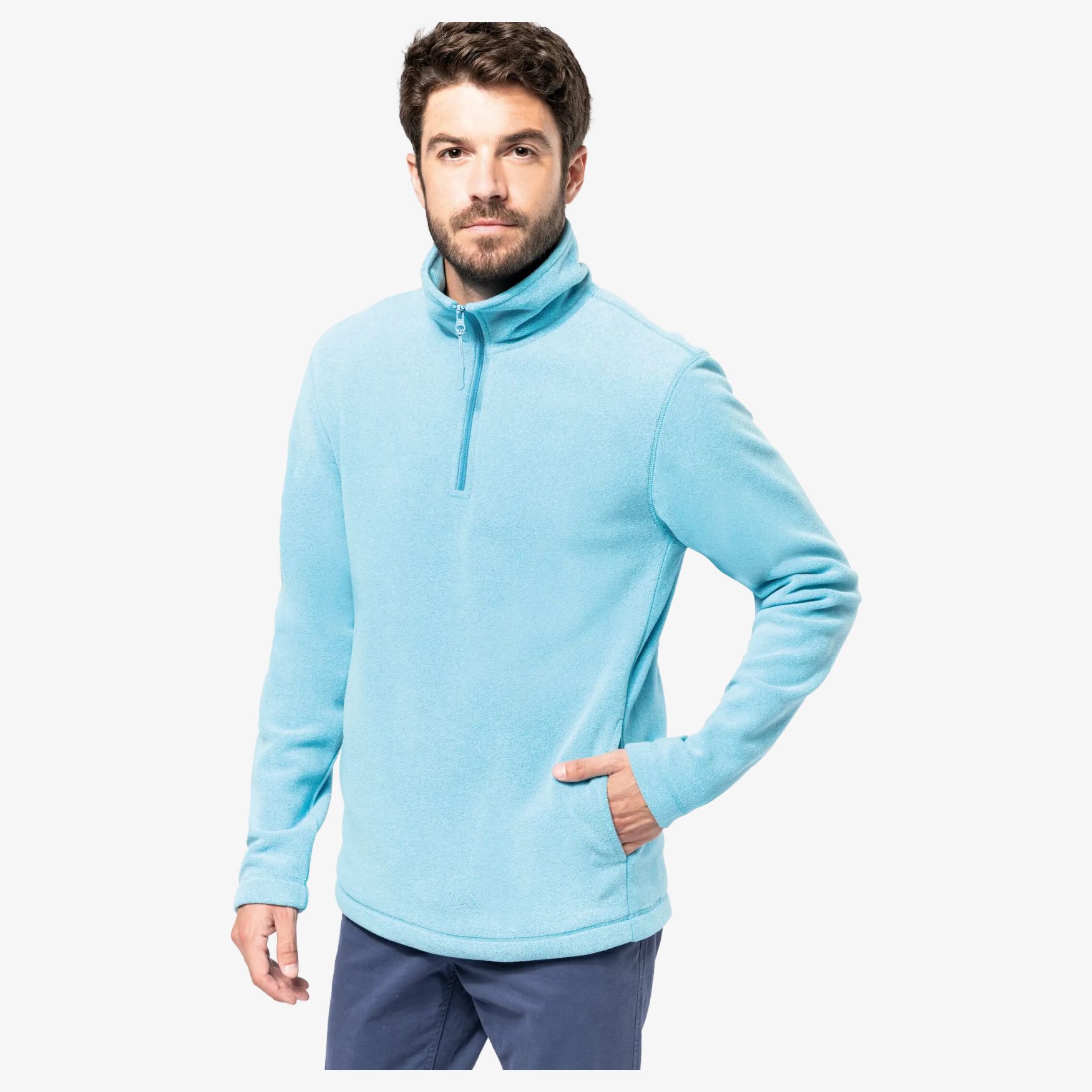 Detta plagg är konstruerat av 100% mikrofiber polär polyester, vilket ger komfort och värme. Det har en zippad krage för extra skydd och två praktiska sidfickor för att hålla dina saker. Dess klassiska passform gör det till ett fleranvändningsplagg, lämpligt för olika tillfällen.
