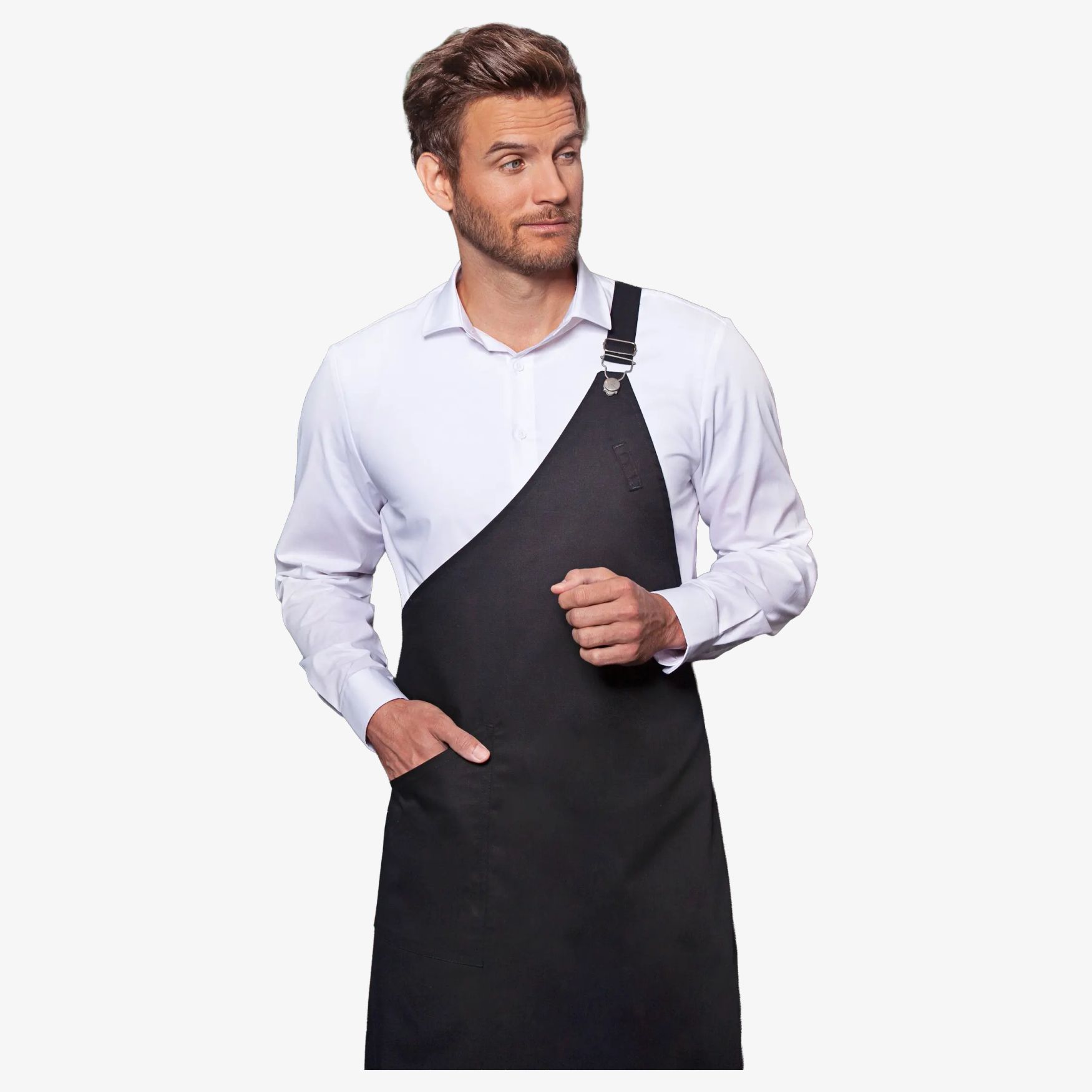 LS36 - Asymmetrical bib apron Tablier ls36 - black