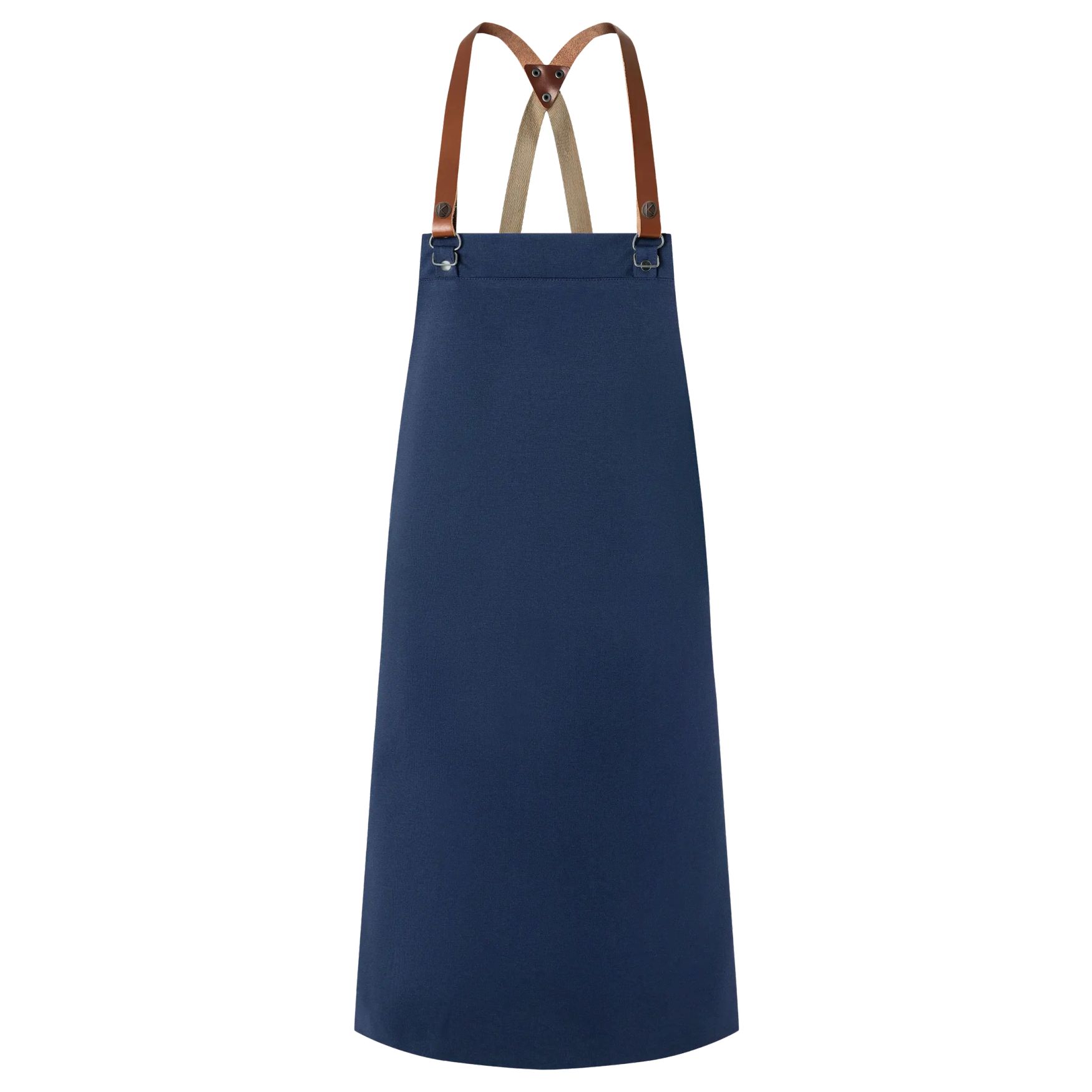 Bib apron green-generation är ett förkläde i 65 % återvunnen polyester och 35 % bomull, med korsade axelband i läder, kontrasterande band baktill och axelband som är avtagbara med tryckknappar. Mått: 70 x 85 cm. Anpassningsbart.