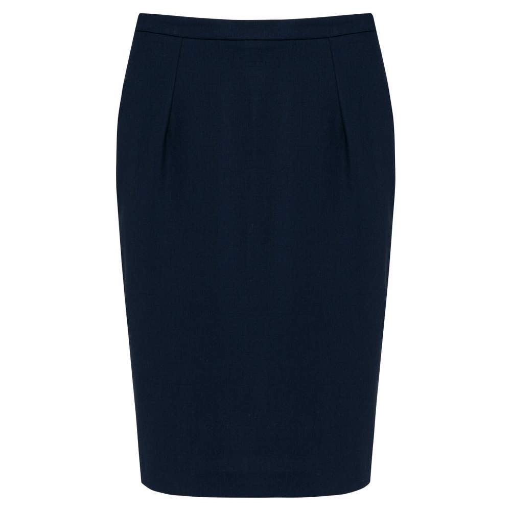 Rätt kjol med foder 100% polyester stretch. Två veck på framsidan och två veck på baksidan på midjan. Öppningslyft på baksidan, skyddad av en underbro hålls av en knapp för mer komfort. Slits i botten av kjolen på baksidan, friflytande foder med slits. Rak skärning.