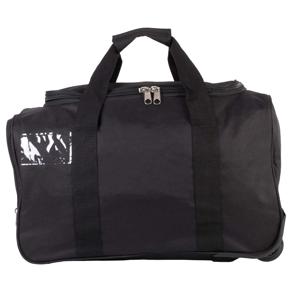 Sportväska med rullsystem, medelsort stor (55 cm), i polyester 600D. 1 sidficka med blåslås för att förvara skopar, stor öppning med bred blåslås på toppen, etiketthållare för identifiering, förstärkta handtag med remmar om 5 cm runt om väskan. Mått: 51.5x31x31 cm.