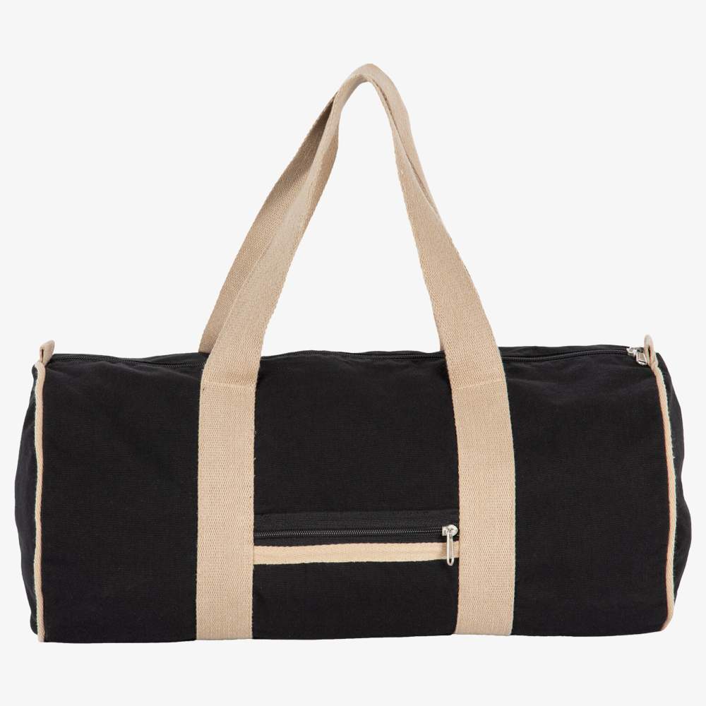 Tvåfärgad recyklingssäck tillverkad i återvunnen bomull och återvunnen polyester. Den har handtag på 4,25 cm i kontrastfärg, sysa runt hela kanten för större hållbarhet. Säcken är utrustad med en framsida ficka med zippstängning. Dess mått är 50 x 25 x 25 cm, vilket ger en kapacitet på 31 liter. Denna säck är certifierad GRS (Global Recycled Standard) av Ecocert Greenlife.