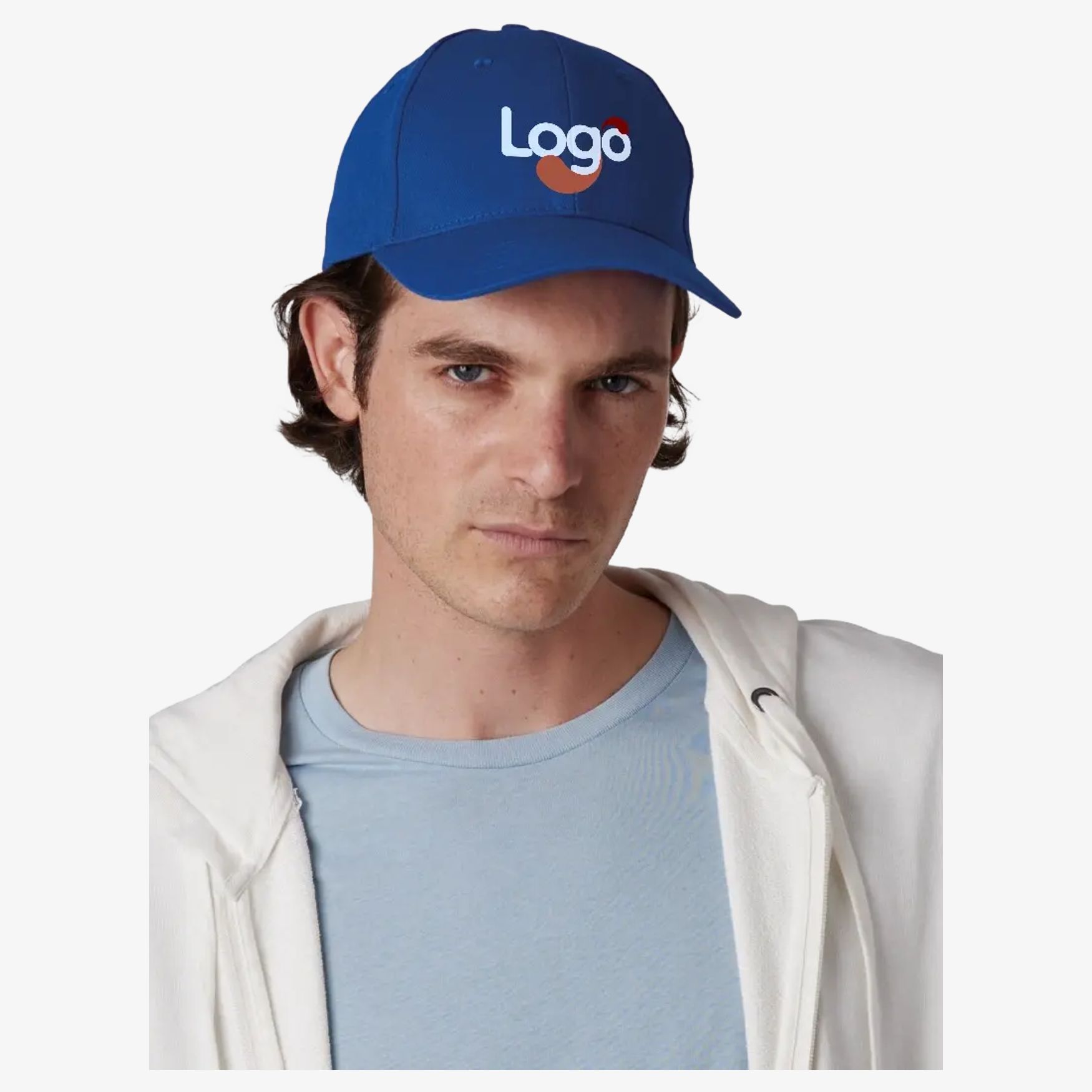 The 6-panel cap combines recycled twill cotton and recycled polyester. It has an adjustable closure with hook and loop fastener. The product includes a traceability system through markers in the thread, accessible via a QR code allowing certification authentication with a smartphone.