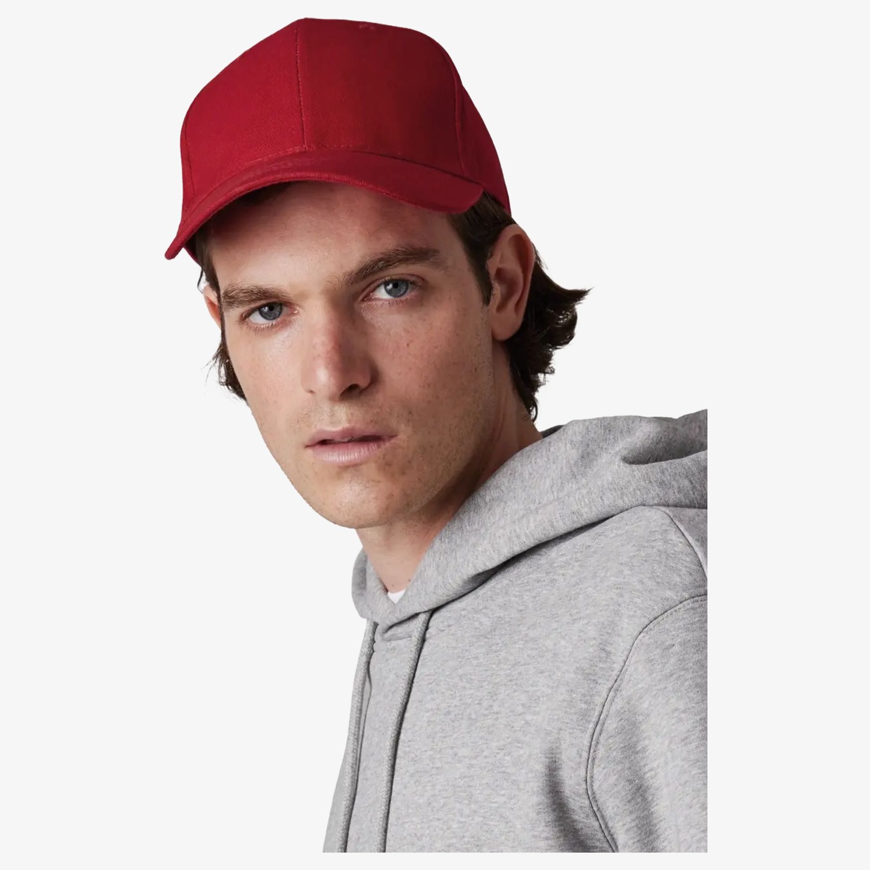 Ekologisk keps 6 är en keps med 6 paneler och ett justerbart metallspänne, utformad för att anpassa huvudomfånget efter behov.