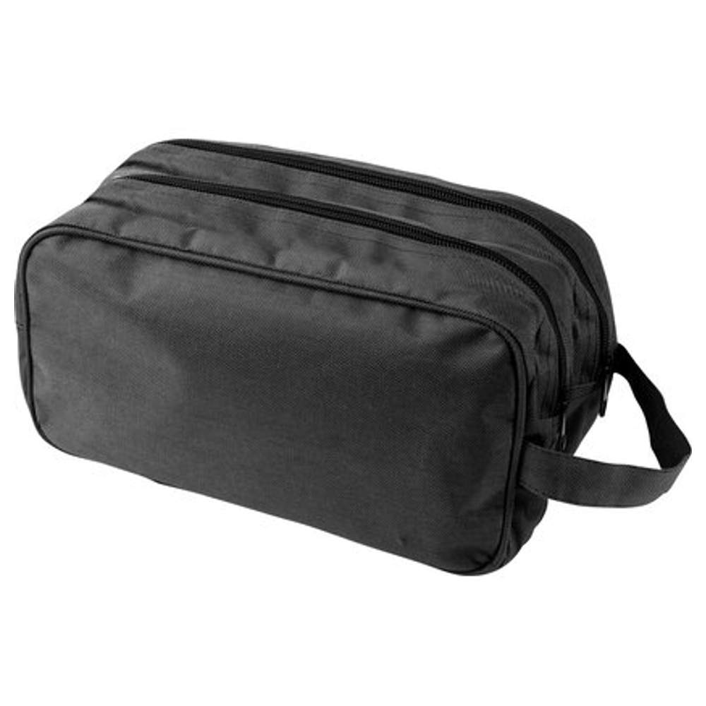 Denna toalettväska är utformad för att underlätta organiseringen av dina personliga tillhörigheter under resor. Den har två praktiska framfackor, säkrade med glidlås, som ger snabb och enkel tillgång till dina toalettartiklar. En integrerad handtag erbjuder ett bekvämt grepp och lätt transport. Dess mått är 23,5 x 8,5 x 14,5 cm. Tillverkad i polyester är denna väska designad för att vara både lätt och hållbar, säkerställande skydd för dess innehåll.