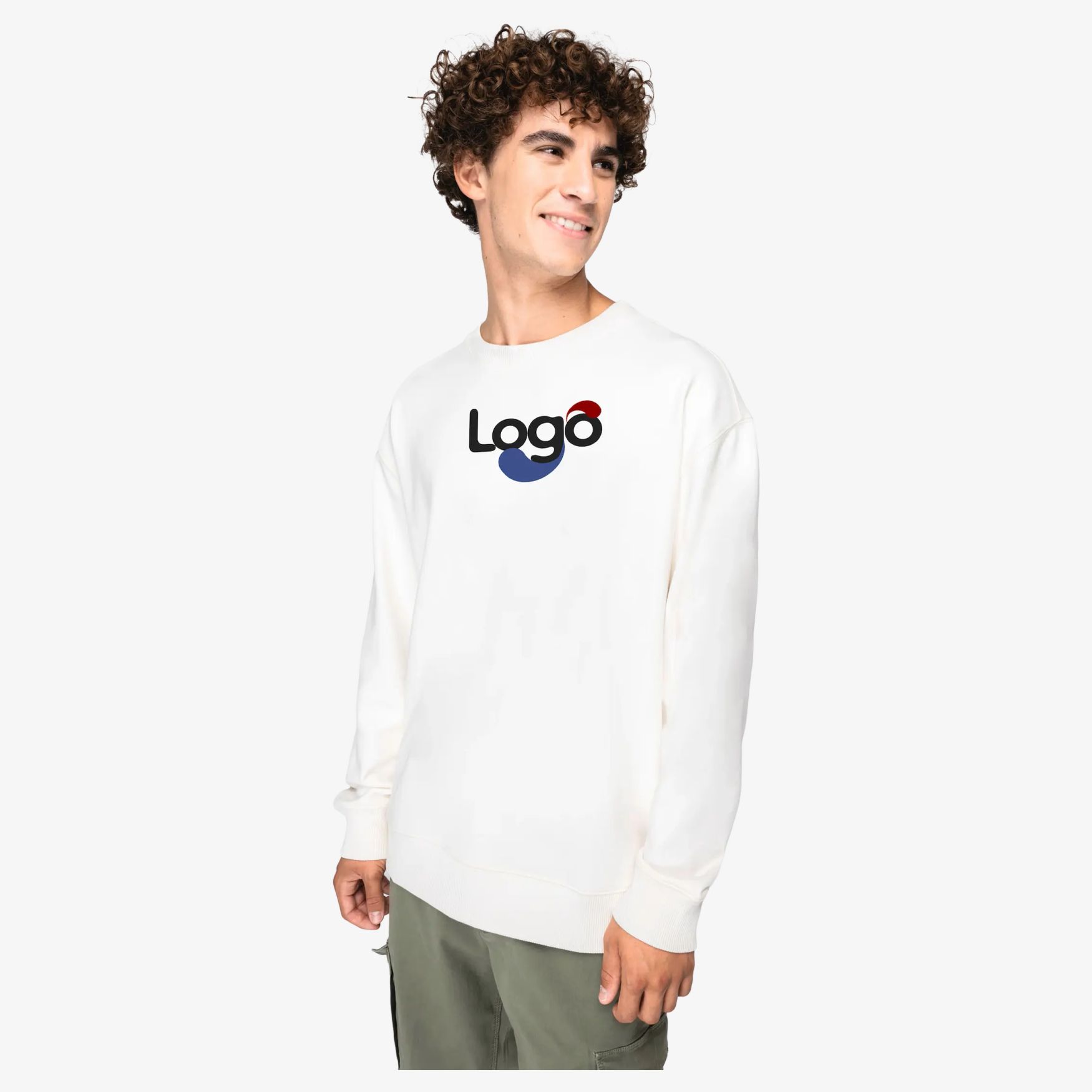Sweat-shirt à col rond à épaules tombantes French Terry unisexe är tillverkad i oborstat 3-trådigt molton, med standardpassform och tubstickad konstruktion. Slät yta och avsaknad av varumärkesetikett för anpassning. Sammansättning: 100% ekologisk bomull.