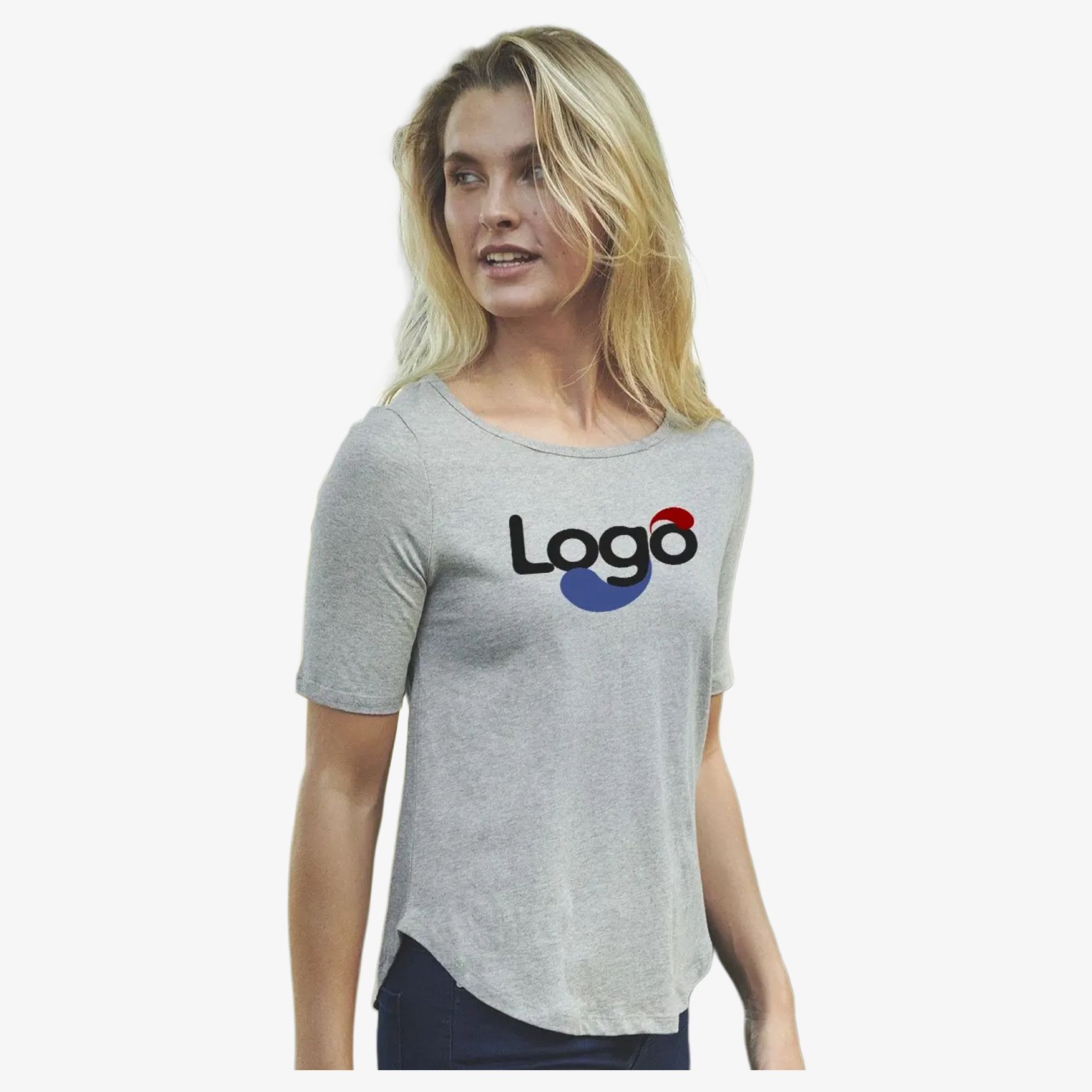 Dam tee-shirt med halvlånga ärmar lämpar sig för daglig användning med en passform utformad för enkel och bekväm användning. Kragen i ribbstickning och nackbandet i kragen ger en välgjord finish. Den angivna sammansättningen är 100 % kammad ekologisk bomull.