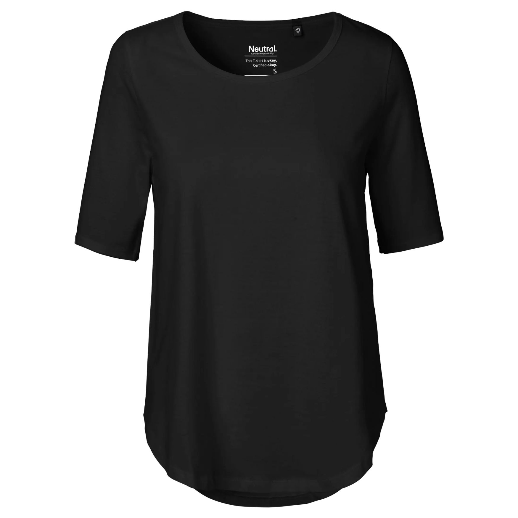 Dam tee-shirt är en tee-shirt med halvlånga ärmar, anpassad för daglig användning. Dess enkla skärning och ribbade krage ger en bekväm passform. Nackbandet i kragen ger en diskret invändig finish.