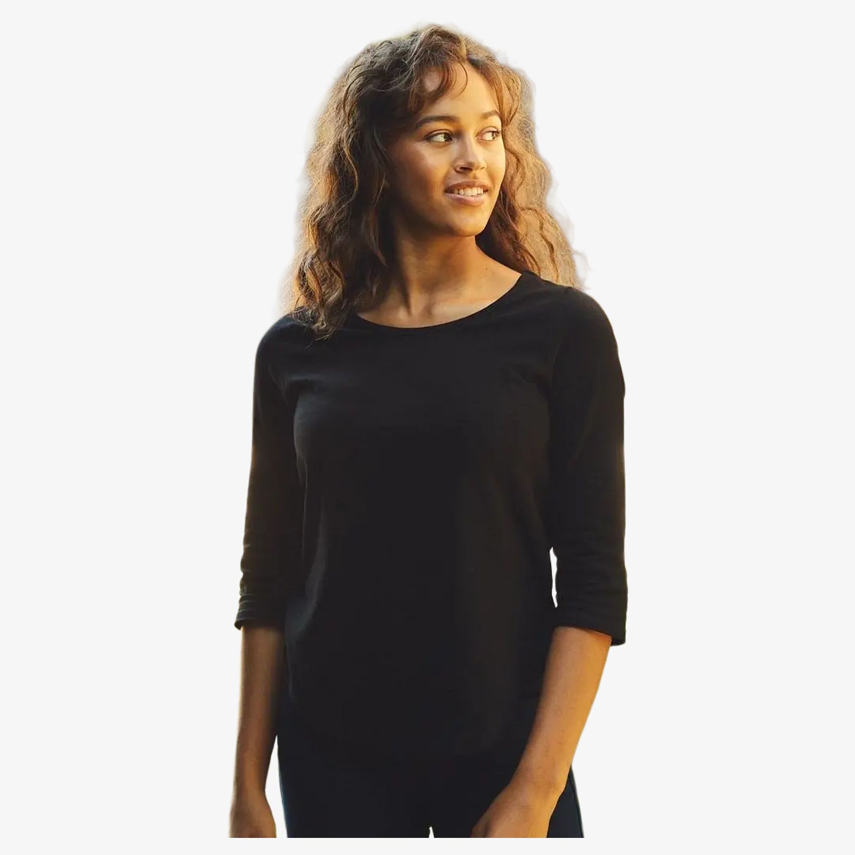 Dam 3/4 tee-shirt är en tee-shirt för kvinnor med 3/4-ärmar, anpassad för daglig användning. Den ribbade kragen och nackbandet i kragen ger en enkel finish och bekväm passform vid användning.