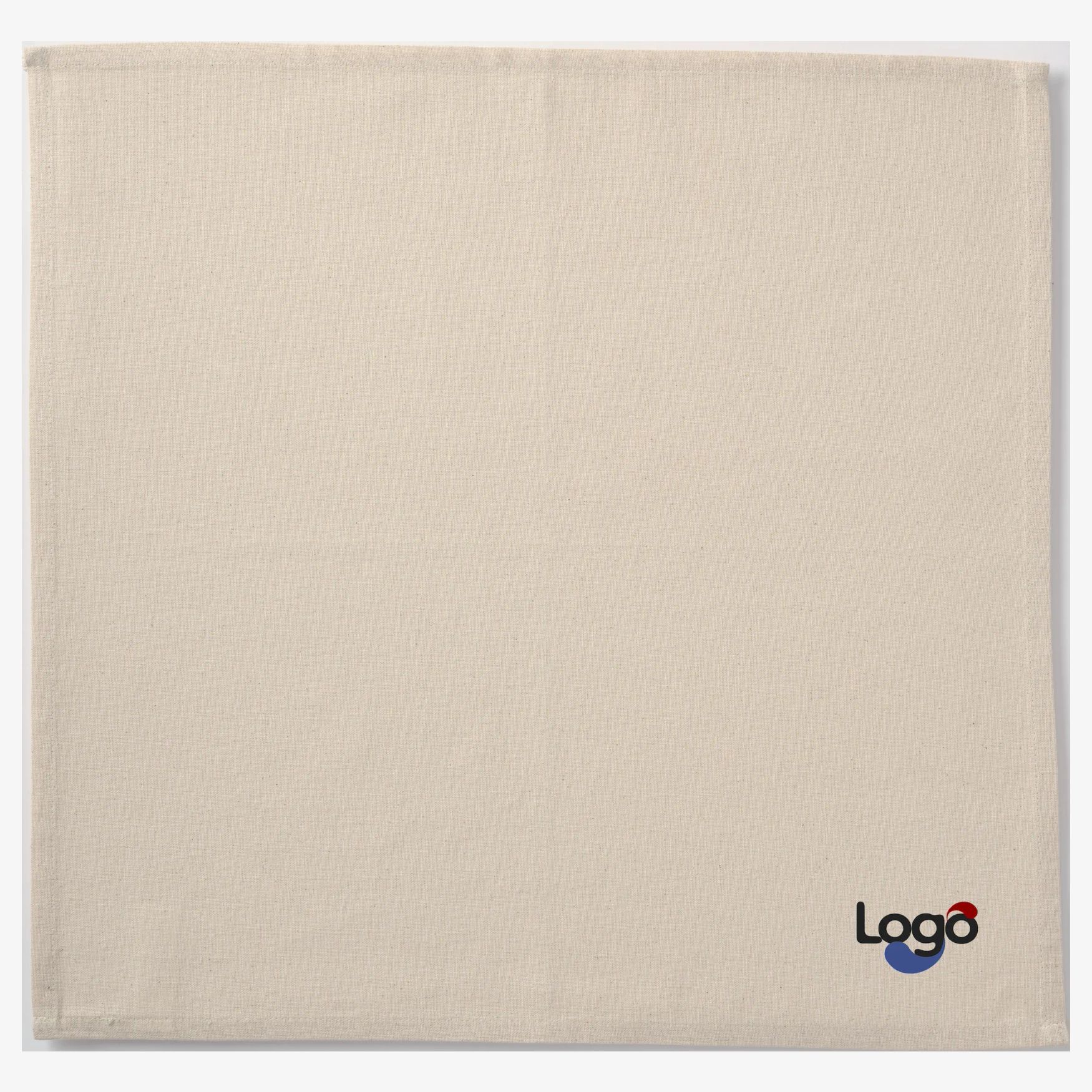 The organic cotton napkin is suitable for restaurants, reception areas, events, and home goods or tableware shops. It is customizable and offers a neat finish with its hemmed edges. The composition is 100% organic cotton promoting environmentally friendly use.