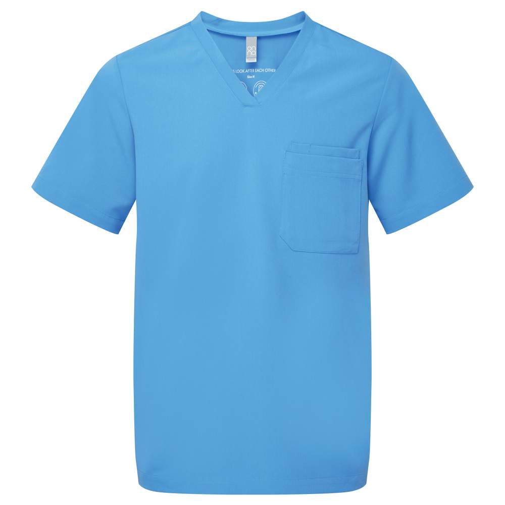 Tunique médicale à manches courtes pour homme, conçue pour un confort optimal. Son tissu quadri-extensible assure une liberté de mouvement accrue. Cette tunique est perméable à l'air, facile d'entretien et infroissable, idéale pour un usage quotidien. Elle présente une encolure en V, une poche plaquée centrale intégrant une poche stylo, des pinces dans le dos et des fentes sur les côtés pour une coupe moderne et ajustée. La composition inclut du polyester recyclé, contribuant à une démarche plus responsable. Composition : 42% polyester, 33% polyester recyclé, 19% viscose, 6% élasthanne