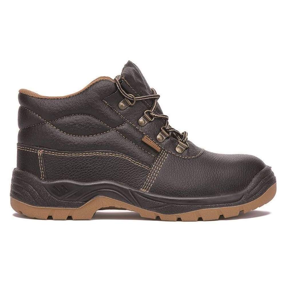Dessa säkerhetsskor är utformade för att erbjuda optimal skydd i olika arbetsmiljöer. De tillverkas av högkvalitativt skinn Buffalo, som säkerställer ökad hållbarhet och motståndskraft mot slitage. Designen inkluderar en stålskyddsplåt för att skydda fötterna mot slag och krosskador. Den genomborrningsskyddande stålsulan skyddar mot skador orsakade av spetsiga föremål. Den antistatiska, avtagbara innersulan i EVA med specialbehandlad antibakteriell PU-ytbehandling erbjuder förbättrad komfort och ökad hygien. Skydd för fotled i skumlatex täckt med läder bidrar till stabilitet och förebyggande av vrickningar. Den dubbla densitetssulan i PU, med en övre expanderad del och en kompakta slitsula, säkerställer optimal stötabsorption och motståndskraft mot böjning. Den yttre delen i pigmenterat skinn Buffalo är vattentätt och andningsbar, vilket erbjuder skydd mot väder och god ventilation. Den andningsbara, icke vävda textila fodret hjälper till att hålla fötterna torra och förebygga infektioner.