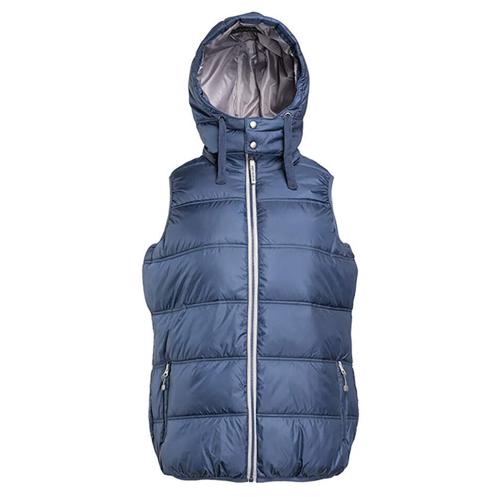Kvinnlig matelasserad bodywarmer utformad för att erbjuda komfort och skydd. Den har en kontrasterande dragkedja med en logotypdragare. Foder och dragkedjor på fickorna är också kontrasterande. En avtagbar och justerbar kapuschong med platt snöre erbjuder ytterligare skydd. Denna bodywarmer är vattenavvisande och vindtät, vilket erbjuder skydd mot elementen. Den har två inre fickor, varav en med dragkedja, för säkert förvaring av personliga tillhörigheter. Den justerbara passformen säkerställer en bra hållning och en smickrande siluett. Zip SBS.