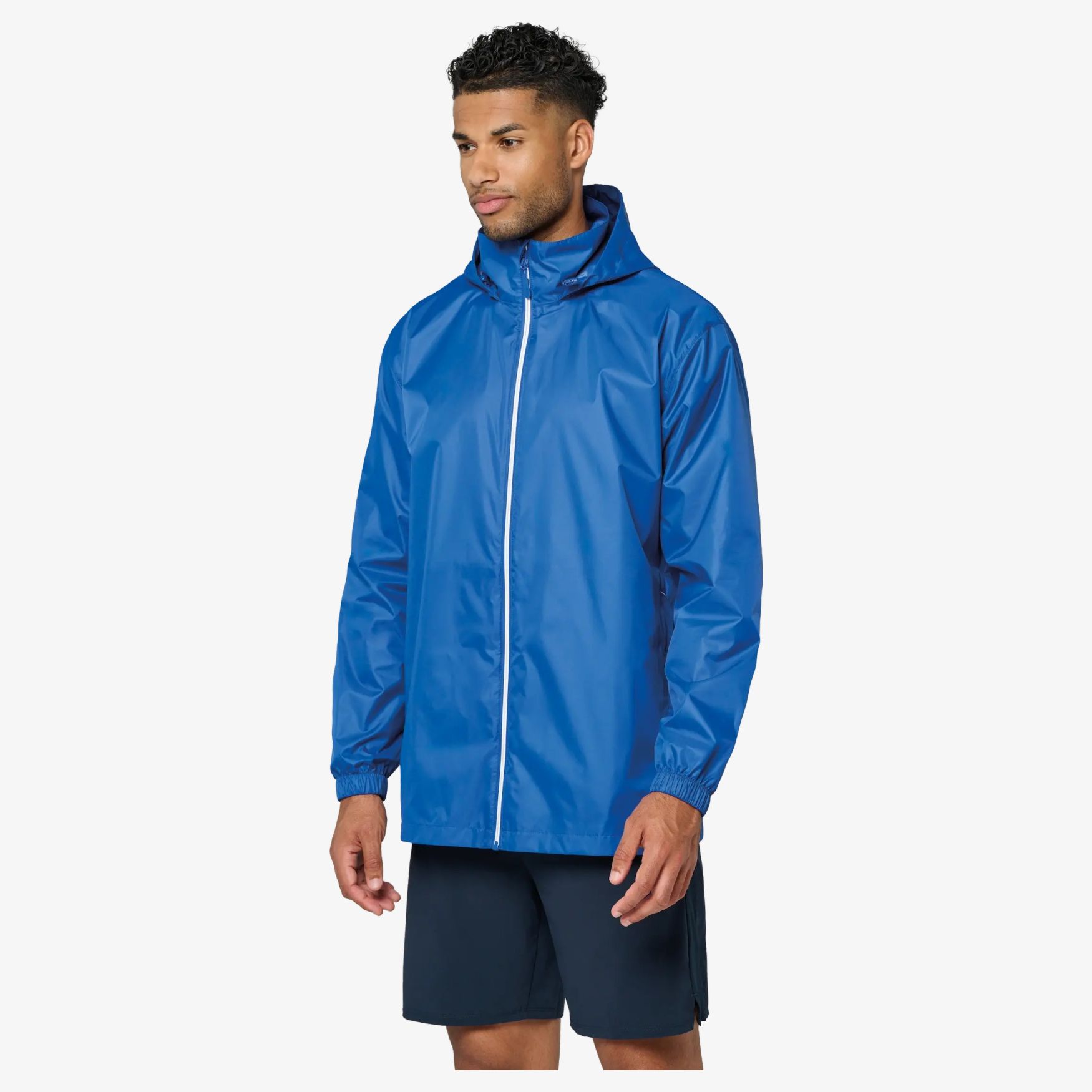 Veste Pluie Unisexe för utomhusaktiviteter i fuktigt väder, med vattentätt tyg 1500 mm, värmeförseglade sömmar och justerbar huva som förvaras i kragen. Stängning fram med dragkedja och sidfickor med dragkedja, med två innerfickor.