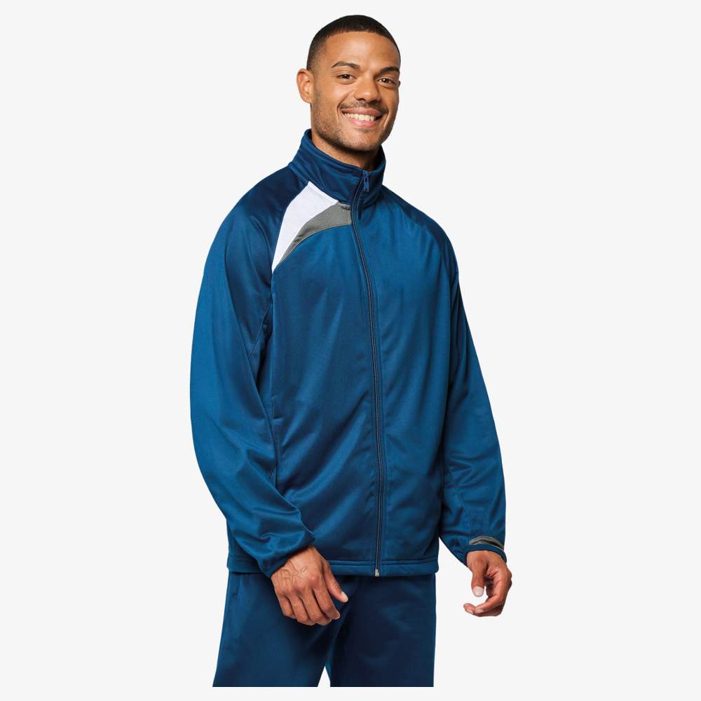 Denna träningsjacka är tillverkad av 100% polyester polytricot, vilket ger komfort och hållbarhet för olika aktiviteter. Den har en klassisk passform med en dragkedja längs hela längden, vilket underlättar på- och avklädning. Två sidofack gör det möjligt att säkert förvara små personliga föremål. Ärmkanterna är försedda med elastiska band för optimal passform och ökat komfort. Denna jacka kan kombineras med byxan PA100 för att skapa en komplett träningsdräkt.