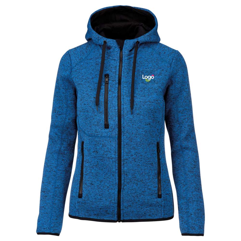 Denna chinad jacket med kapuschong för dam kombinerar komfort och stil med sin inre stickning 100% polyester. Den är utrustad med två framfickor med kontrasterande zip och en bröstficka med kontrasterande zip för praktiskt förvaring. Kapuschen är fodrad med tröja 100% bomull med ett kontrasterande platt dragsnöre för en anpassad passform. Ärmarna och kanten på klädesplagget är avslutade med ett kontrasterande elastiskt bias för mer komfort. Sydd med överlappssting för bättre hållbarhet. Denna jacka är idealisk för en avslappnad och bekväm look. Möjlighet till anpassning med broderi för att visa ditt logo eller din bild.