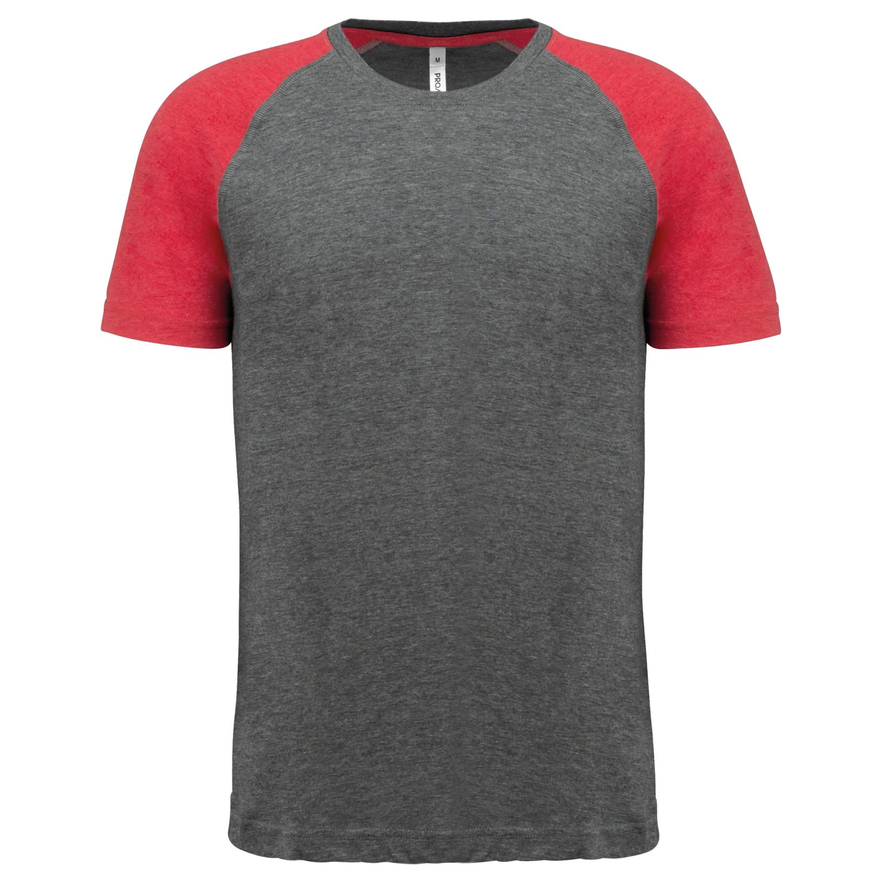PA4010 - Tvåfärgad sport tröja med korta ärmar pa4010 - grey_heather/sporty_red_heather