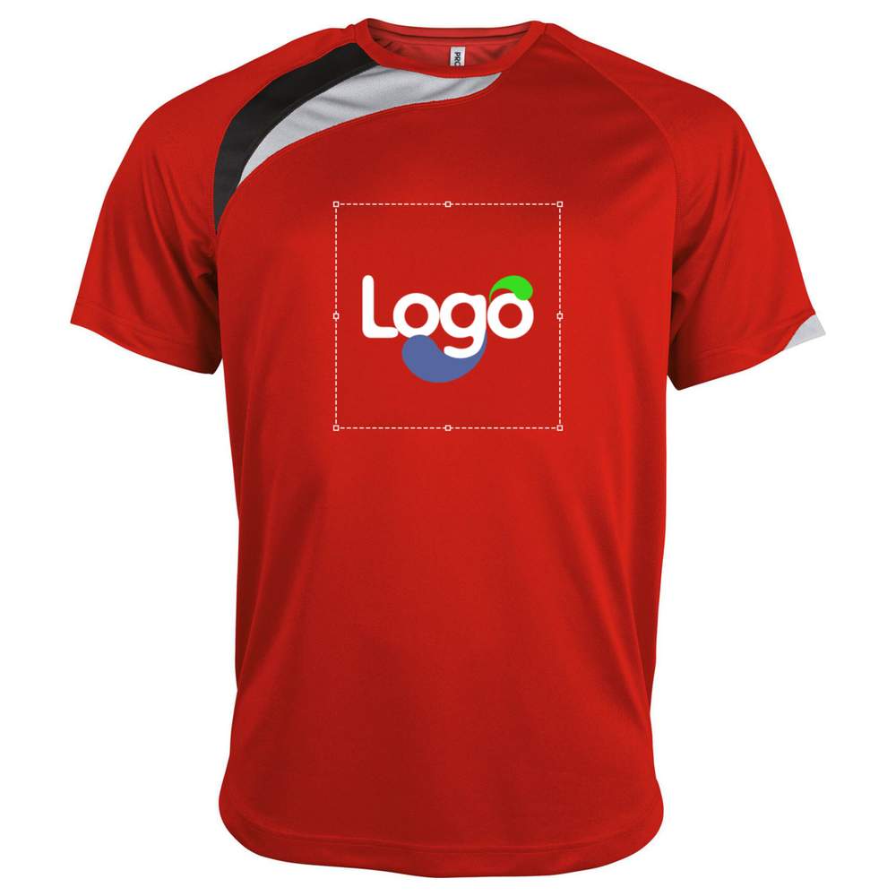 Detta sport barn t-shirt korta ärmar är tillverkat i 100% polyester, vilket ger snabbtorkning och optimal komfort under sportaktiviteter. Det har kontrastfärgade insatser för ett dynamiskt utseende och ton-i-ton överlappande stygningar för bättre hållbarhet. Botten och ärmarna är dubbelstygade för ökad hållbarhet. Detta t-shirt är personaliserbart, vilket gör det möjligt att lägga till ditt logo, en bild eller andra grafiska element för att identifiera ditt varumärke eller för ett specifikt evenemang.