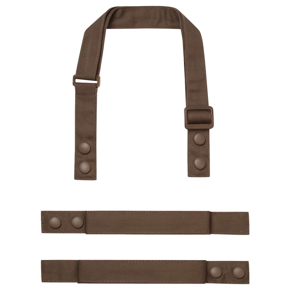 Förklädesremmar konstruerade för att fästas på förklädeskroppen PR190. Denna uppsättning innehåller en nackrem och två midjere mmar, vilket gör det möjligt för en personlig anpassning. Remmarna är utrustade med robusta tryckknappar, vilket underlättar fastsättningen och borttagningen. Nackremmen är utrustad med en glidande justerbar slinga för optimal passform. Tryckknappskåpar i matchande färg säkerställer en snygg och enhetlig finish.