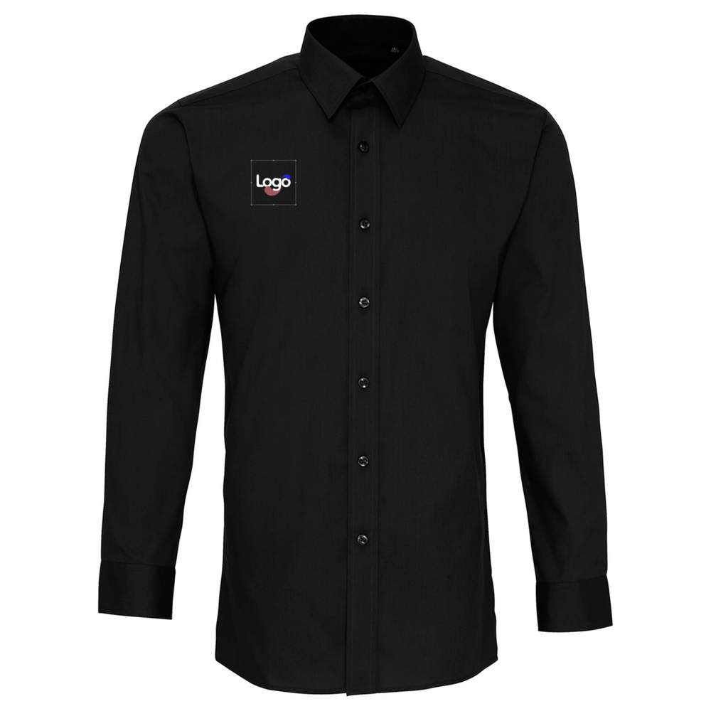 Justerad popelinkrämare för män. Slim fit, mycket trendigt. Förstärkt krage. Långa ärmar med knäppta manschetter. Lätt att stryka. Sammansättning: 65% polyester, 35% bomull. Möjlighet till personalisering med broderi.