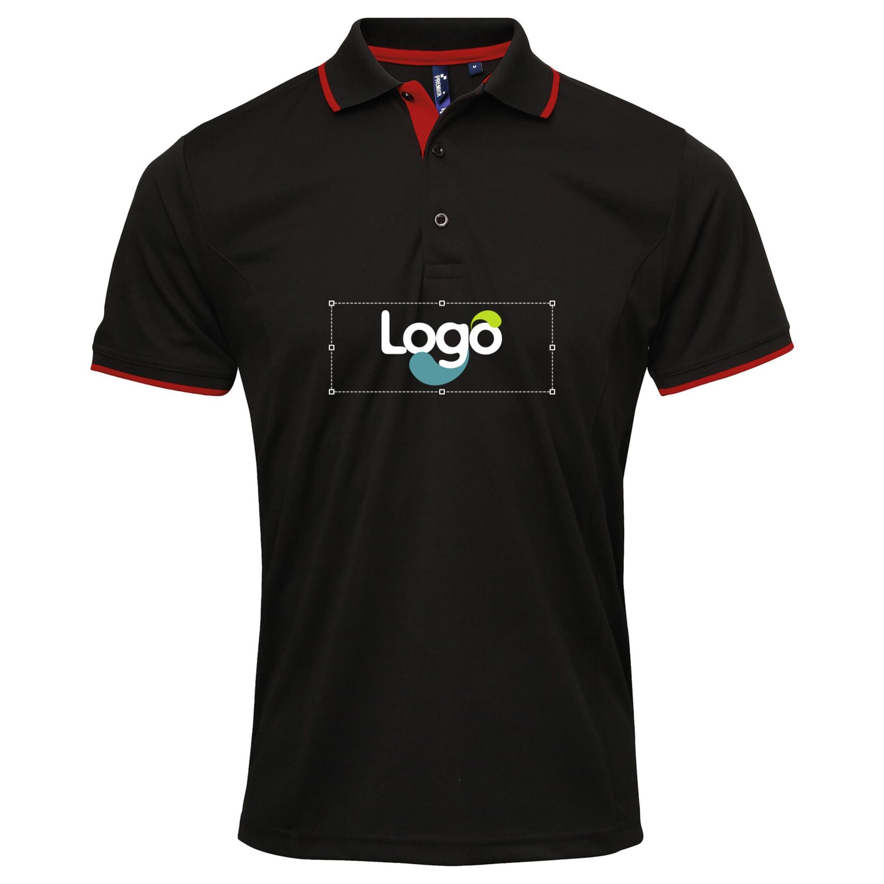PR618 - Polo coolchecker polyester pr618 personlig - black/red