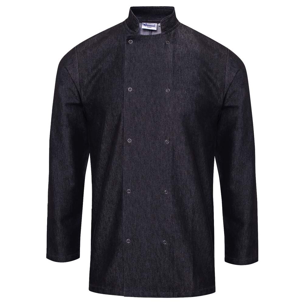 Denna kokskjorta i denim erbjuder ett modernt alternativ till traditionella förkläden. Designad för restaurangprofessionella, kombinerar den stil och funktion. Den moderna passformen och det resistenta materialet gör den till en hållbar och bekväm arbetsdräkt. Den kännetecknas av sin korsade stängning med tio knäppknappar och sin mandarinkrage med noggrant syssömmar. Sammansättningen av bomull och polyester säkerställer en bra passform och lätt underhåll.