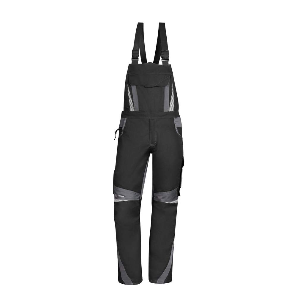 Arbetsoverall för män. Modell med två baksäckor, en ficka med flik, en ficka för mobiltelefon och en ficka för snickarmätare. Ergonomiska axelremmar för bekväm bärning. Bekväm glidlås för enkel användning. Logo placerat ovanför knäet. Segmenterad reflekterande zon för bättre synlighet. Knäkonstruktion med offset för större rörelsefrihet.