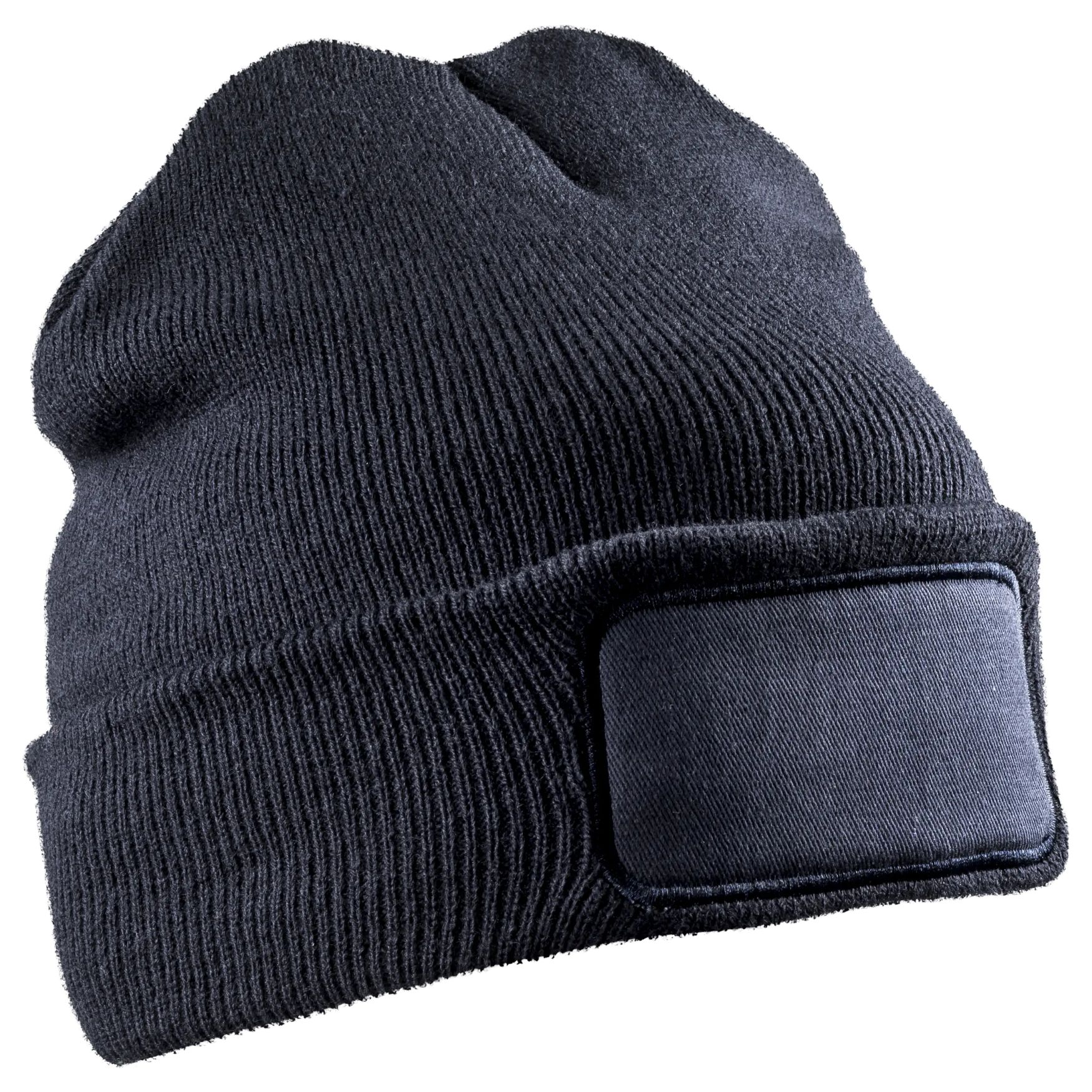Mössa i dubbelstickning är en mössa i kraftig dubbelstickad konstruktion, med stort uppvikt kant och patch i bomullstwill. Den dubbla stickningen ger en varm känsla och god täckning. Anpassning möjlig på patchen.