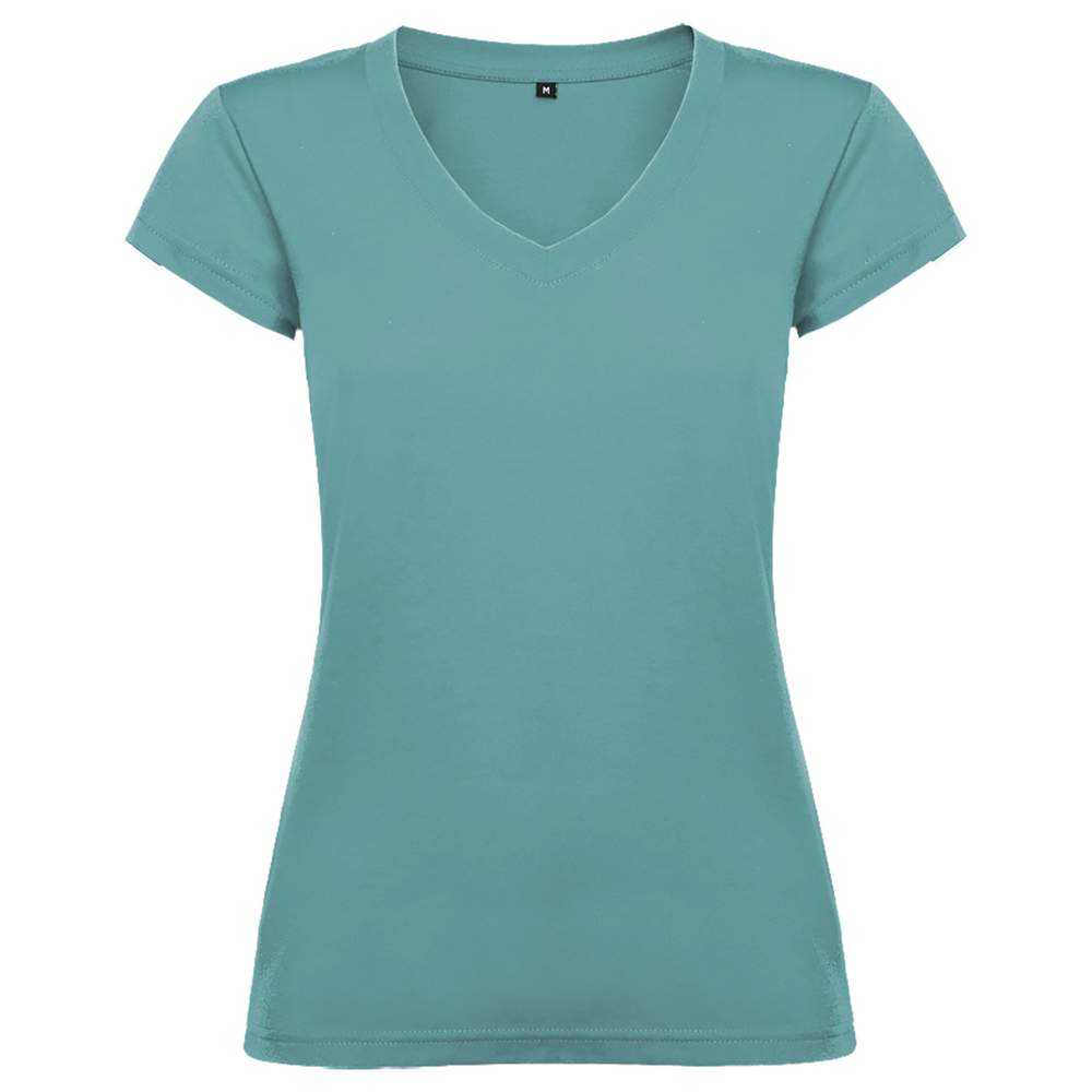 Detta T-shirt för dam är tillverkat av bomull, vilket ger optimal komfort i vardagen. Det har en V-halslinning och korta ärmar, samt en smal passform med sidstygn. Etiketten är borttagbar för ökad komfort. Detta plagg är idealiskt för olika avslappnade tillfällen.