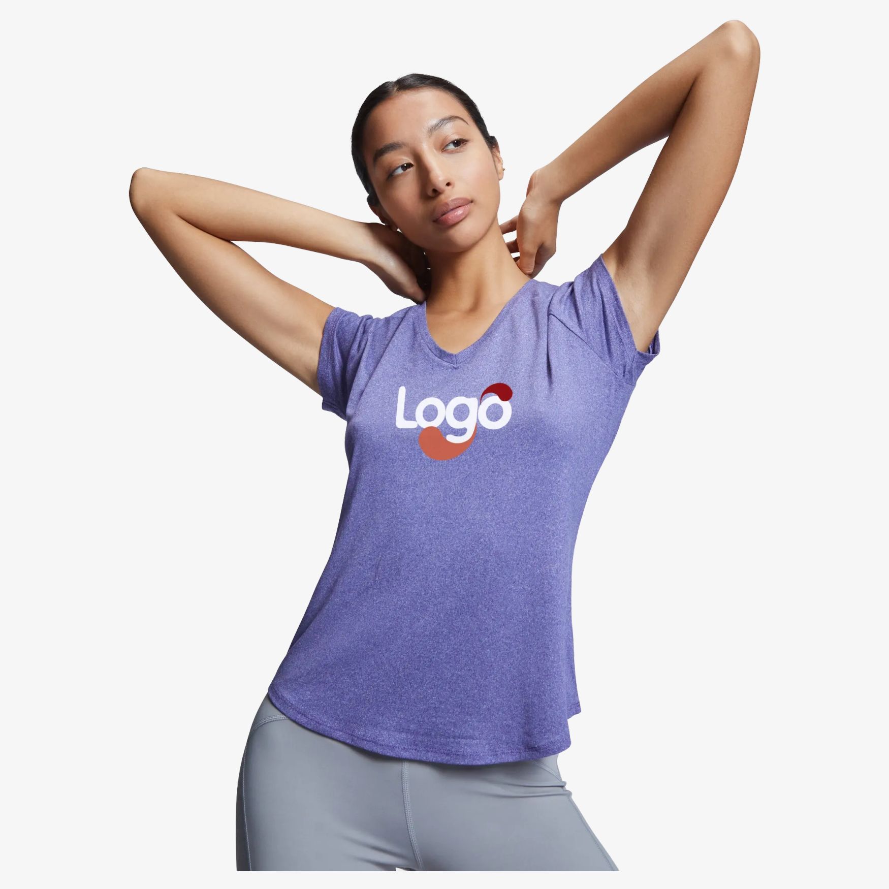 T-shirt teknik multisport för dam, kortärmad stil raglan. V-format nacke. Polyestertyg med bomullskänsla. Anpassat skärning. Modell med andningsaktivitet och enkel torkning. Mjuk känsel. Avtagbar etikett. Tekniskt tyg. Sammansättning: 92% polyester / 8% elastan